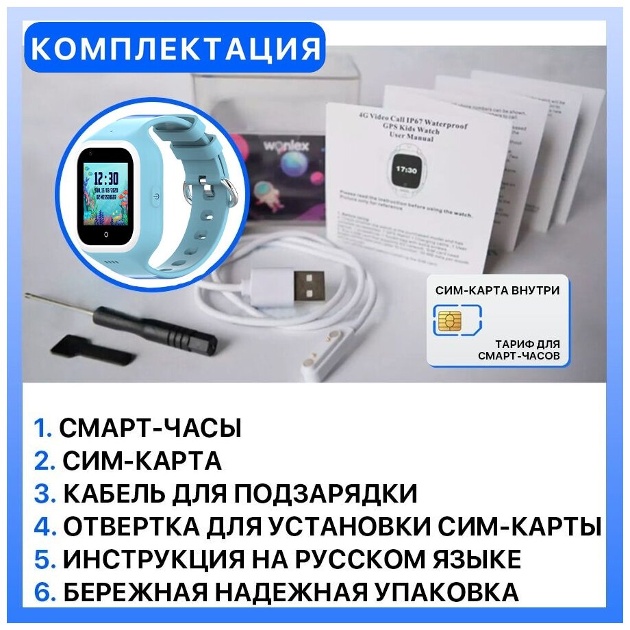 Детские смарт часы Wonlex 4G КТ21 c GPS, местоположением, видеозвонками, WhatsApp, с СИМ картой в комплекте, голубой: сравнение цен, характеристики, фото, актуальное наличие и цены.