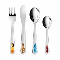Столовые приборы для детского питания, для детей от 3 лет. Изготовлено из высококачественной нержавеющей стали и прочного пластика, можно мыть в посудомоечной машине. Гарантия 3 года.