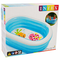Детский бассейн Intex 163x107x46cm 57482 - это яркий и оригинальный надувной бассейн, который станет отличным подарком для вашего малыша. Необычная овальная форма и дизайн в виде прозрачных стенок голубого цвета и весёлого рисунка с морскими обитателями на дне бассейна обязательно порадуют малышей.