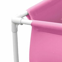 Детский каркасный бассейн квадратной формы розового цвета. Металлический каркас обеспечивает прочность конструкции. Чаша бассейна сделана из высококачественного плотного двухслойного винила толщиной 0,50 мм (стенки) и 0,25 мм (дно). Для комфортного и безопасного купания есть мягкие накладки на горизонтальных перекладинах.