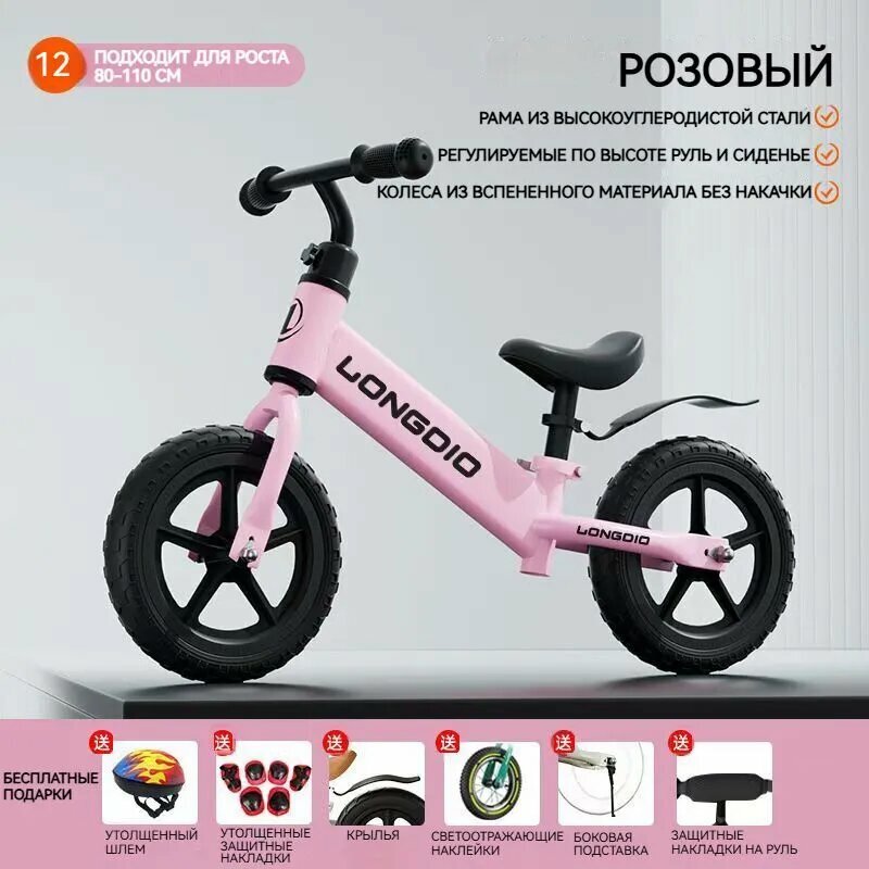 Детский беговел для детей 2-8 лет, 12 дюймов, стальная рама, надувные колеса, регулируемое сиденье, унисекс, светло-розовый: сравнение цен, характеристики, фото, актуальное наличие и цены.