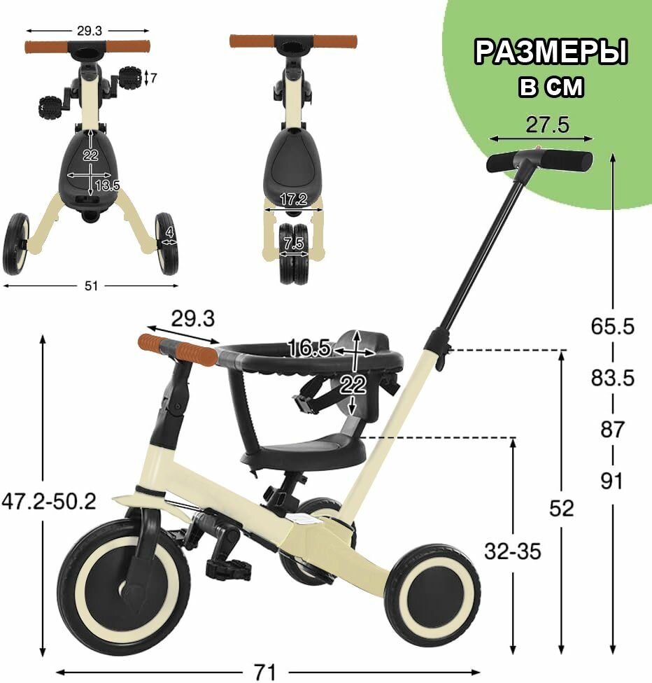 Детский беговел-велосипед 6в1 с родительской ручкой, бежевый — TR008-BEIGE: сравнение цен, характеристики, фото, актуальное наличие и цены.
