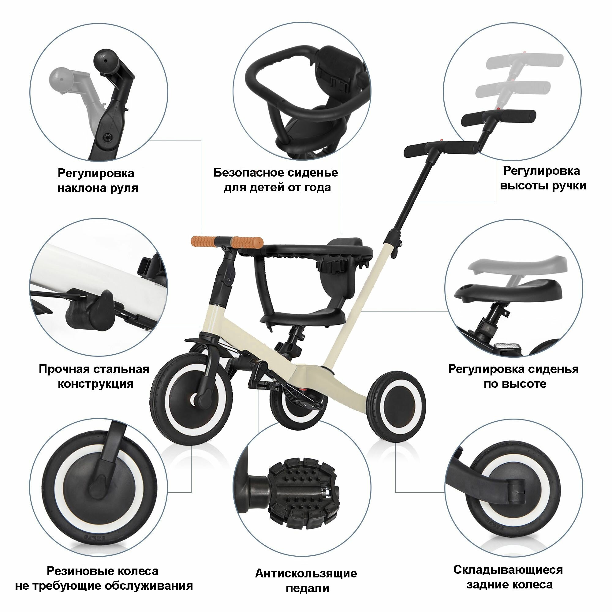 Купить Детский беговел-велосипед 6в1 с родительской ручкой, бежевый — TR008-BEIGE с доставкой по всей России.