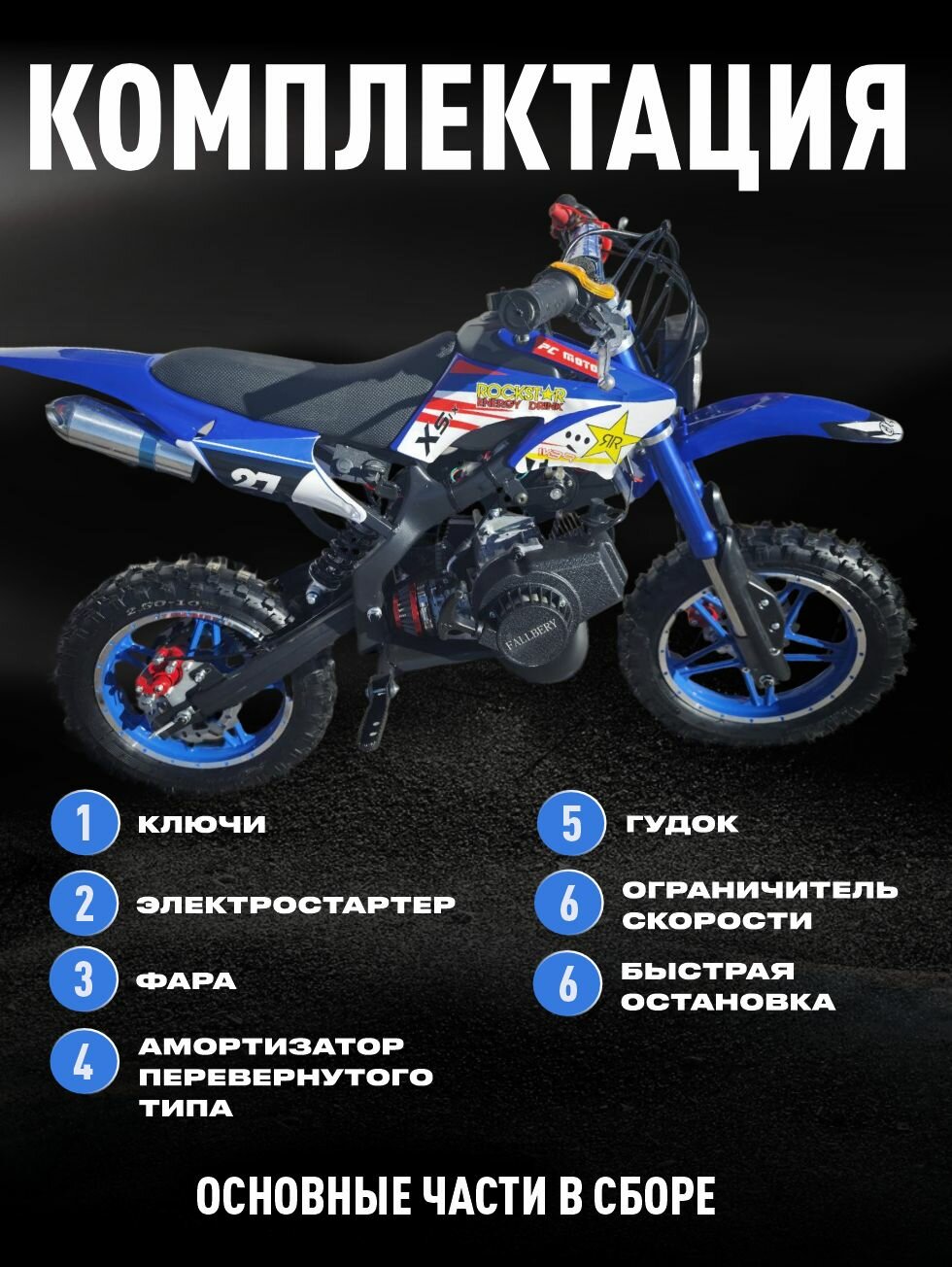 Детский бензиновый мотоцикл 49сс (электростартер + гудок + фара)