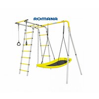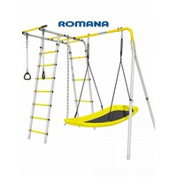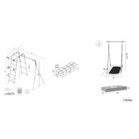 Комплекс включает в себя разнообразное оборудование: канат, кольца, гимнастическая лестница, неподвижный турник. Тренажер можно дополнить разными видами качелей. Конструкция неполной лестницы позволяет выполнять различные упражнения (гимнастические, разминочные, для растяжки и пр.), а также прекрасно подойдет для обучения ребенка подтягиваниям на перекладине.