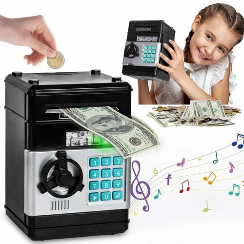 уникальный дизайн: Вы все еще беспокоитесь о неспособности вашего ребенка найти деньги? Этот банк для хранения денег оснащен портом для хранения банкоматов и 4-значным паролем для защиты денег ваших детей. Более того, дети могут устанавливать свои собственные личные пароли в соответствии со своими предпочтениями! PS: Если вы забудете пароль, вы можете вынуть батарейки более чем на 15 минут или заменить батарейки на новые и снова вставить их, и он восстановит исходный пароль: 0000.