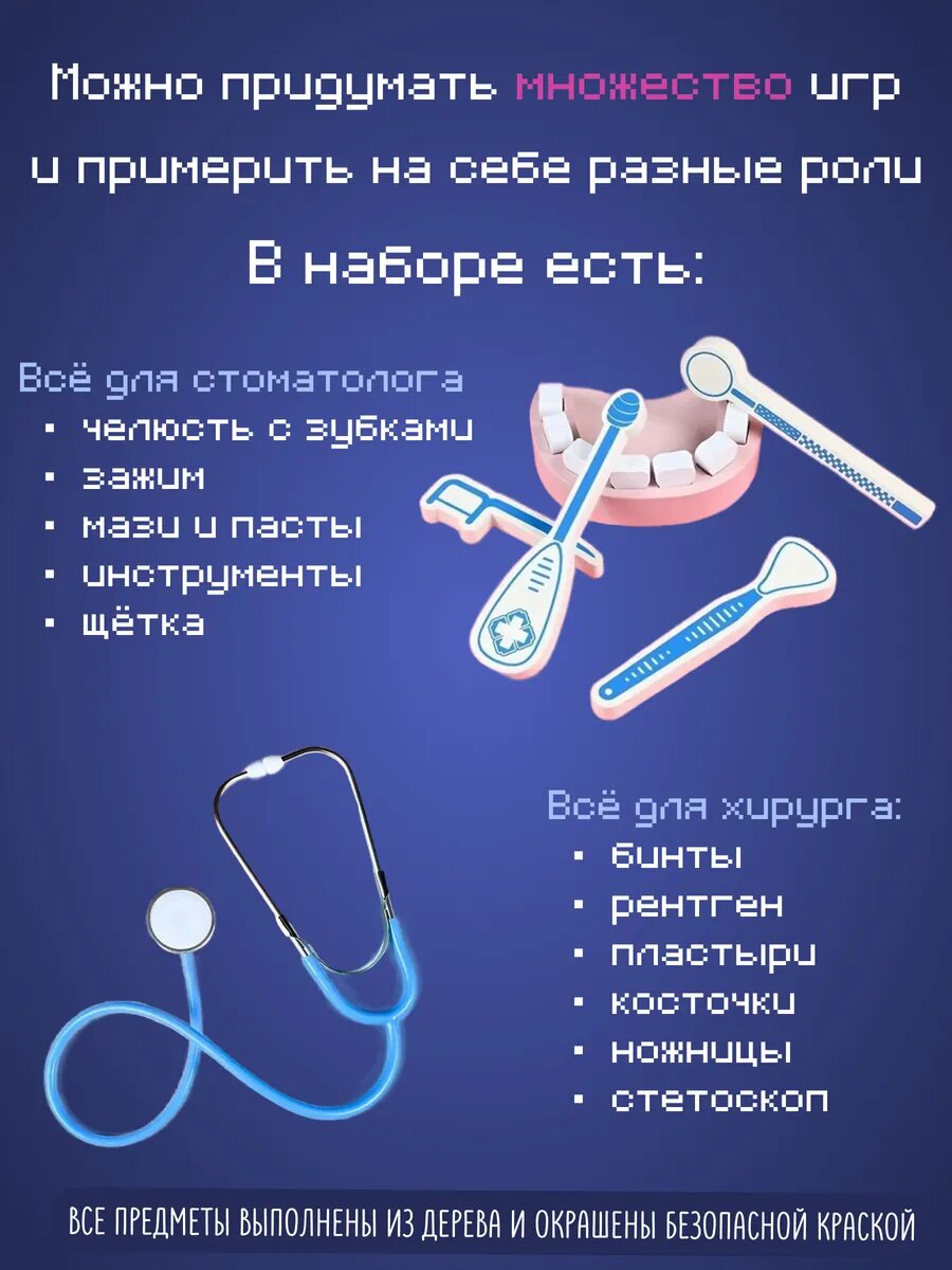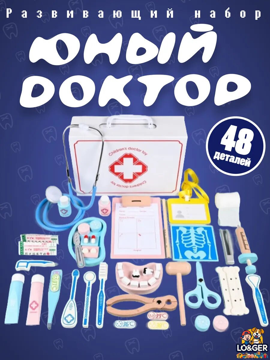 Детский деревянный набор «Доктор», с чемоданчиком, развивающая игрушка, 48 предметов, от 3 лет: сравнение цен, характеристики, фото, актуальное наличие и цены.
