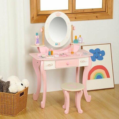 Купить Детский деревянный туалетный столик для девочки, трельяж для детей, трюмо деревянное для девочки с доставкой по всей России.