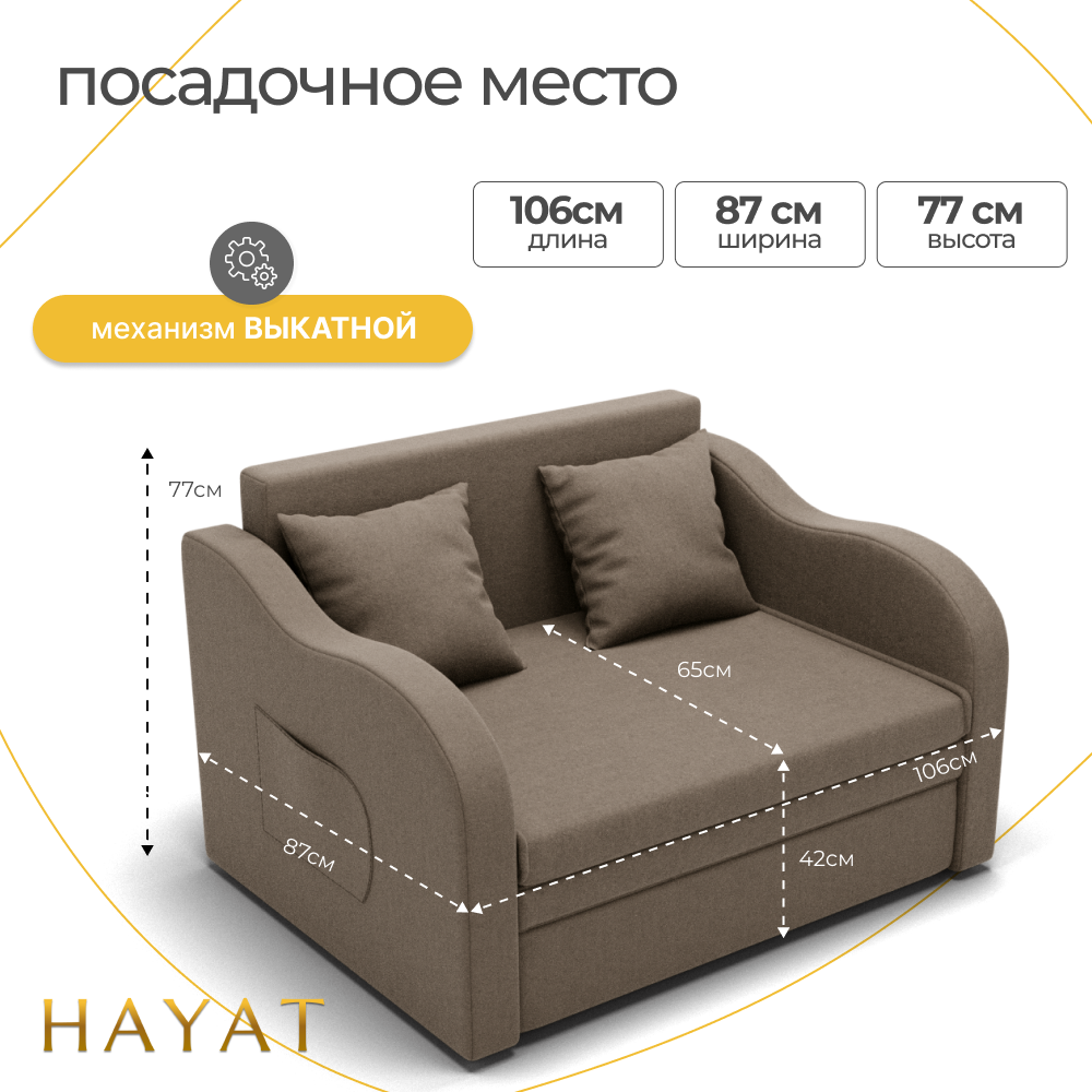 Ширина дивана составляет 106 см, что позволяет разместить его даже в небольших помещениях.