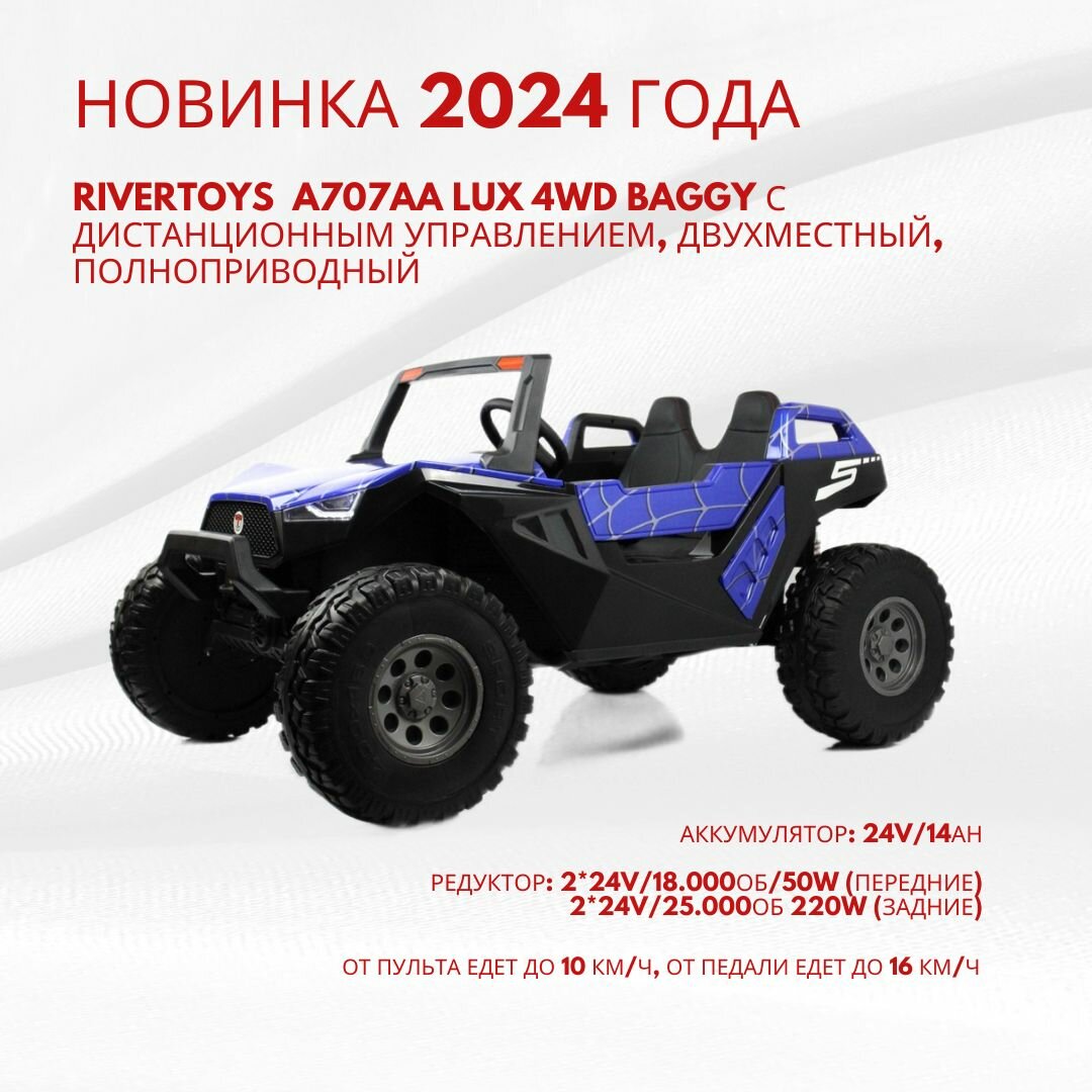 Купить Детский электромобиль RiverToys A707AA LUX 2024 4WD полноприводный, двухместный, с дистанционным управлением синий Spider с доставкой по всей России.
