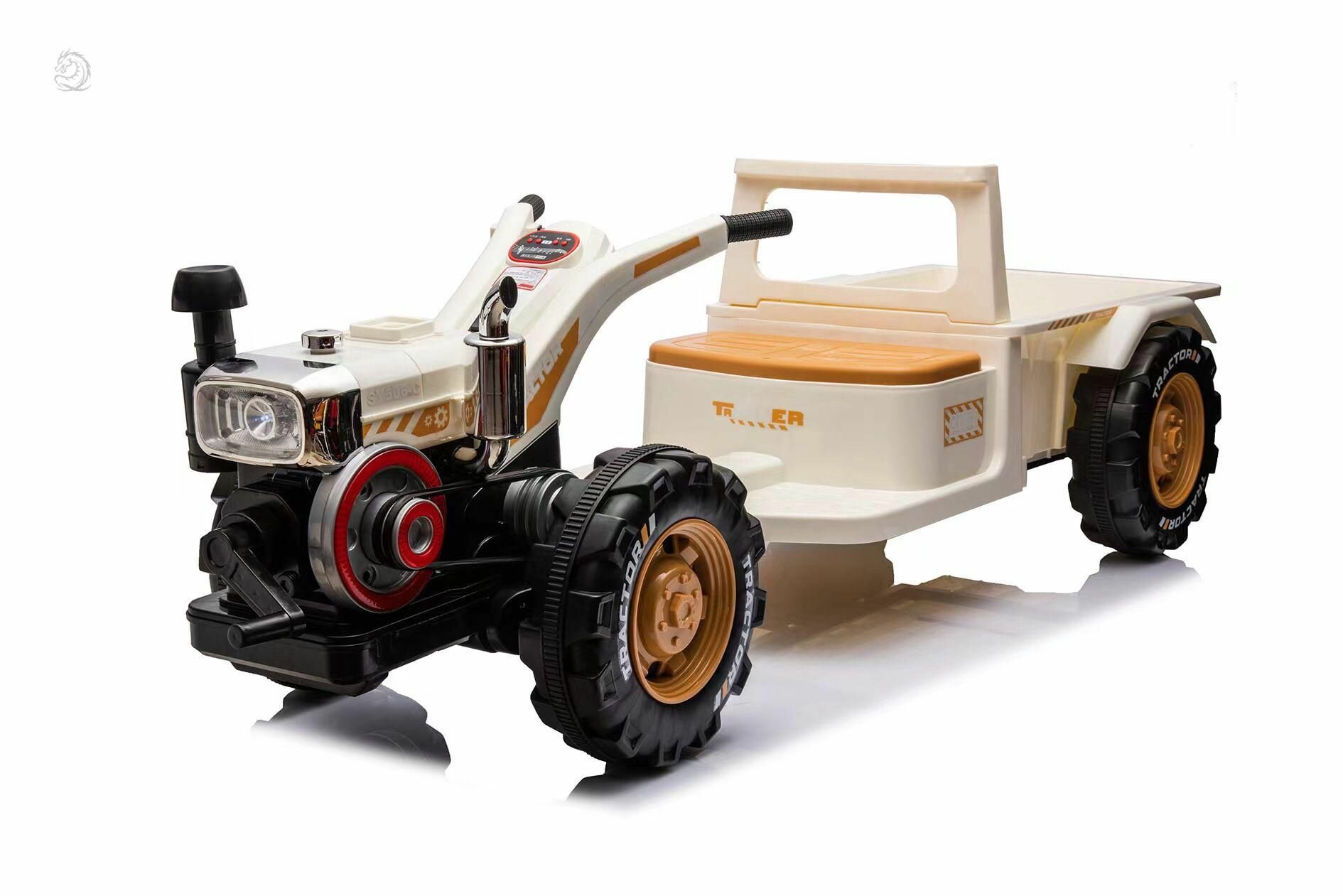 Детский электромобиль Бежевый трактор с прицепом, с пультом управления, со световыми и звуковыми эффектами, детский электромобиль. L