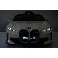 Детский электромобиль BMW I4 (полный привод, 12V) - JE1009-WHITE - это качественный, стильный, лицензионный седан выполненный по лицензии легендарной общеизвестной автомобильной марки BMW. Модель имеет невероятно реалистичный дизайн максимально повторяющий реальный аналог. BMW I4 представлена на нашем сайте в максимальной комплектации. Для комфорта маленького водителя в модели предусмотрено мягкое кожаное кресло, каучуковые колеса комфортные и полный привод модели для использования почти на любой поверхности. Так же для безопасности электромобиль оснащен ремнем безопасности на сиденье и родительским пультом который всегда в приоритете при управлении моделью.