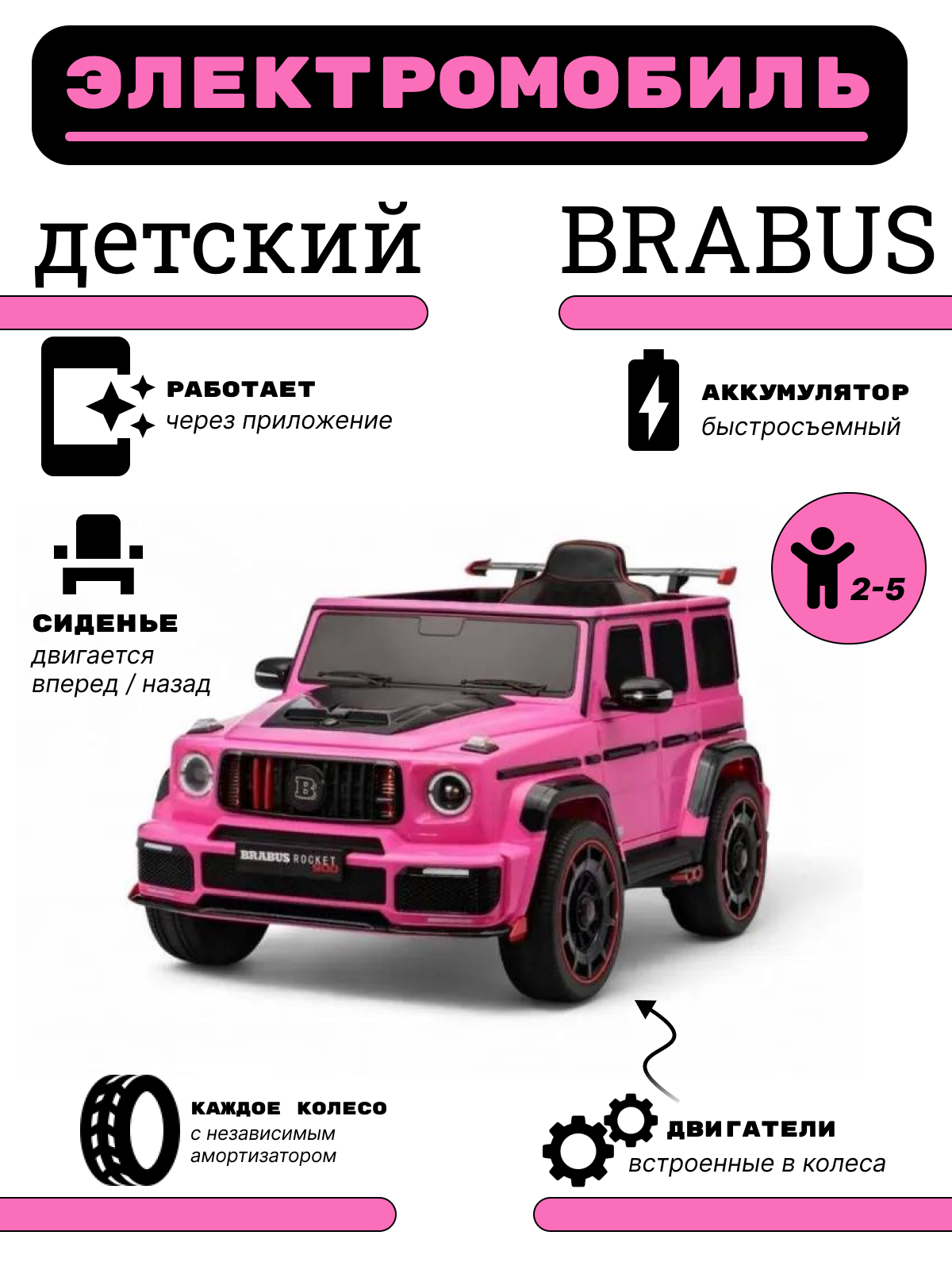 Детский электромобиль BRABUS, Z777ZZ розовый: сравнение цен, характеристики, фото, актуальное наличие и цены.