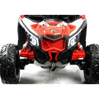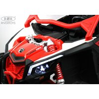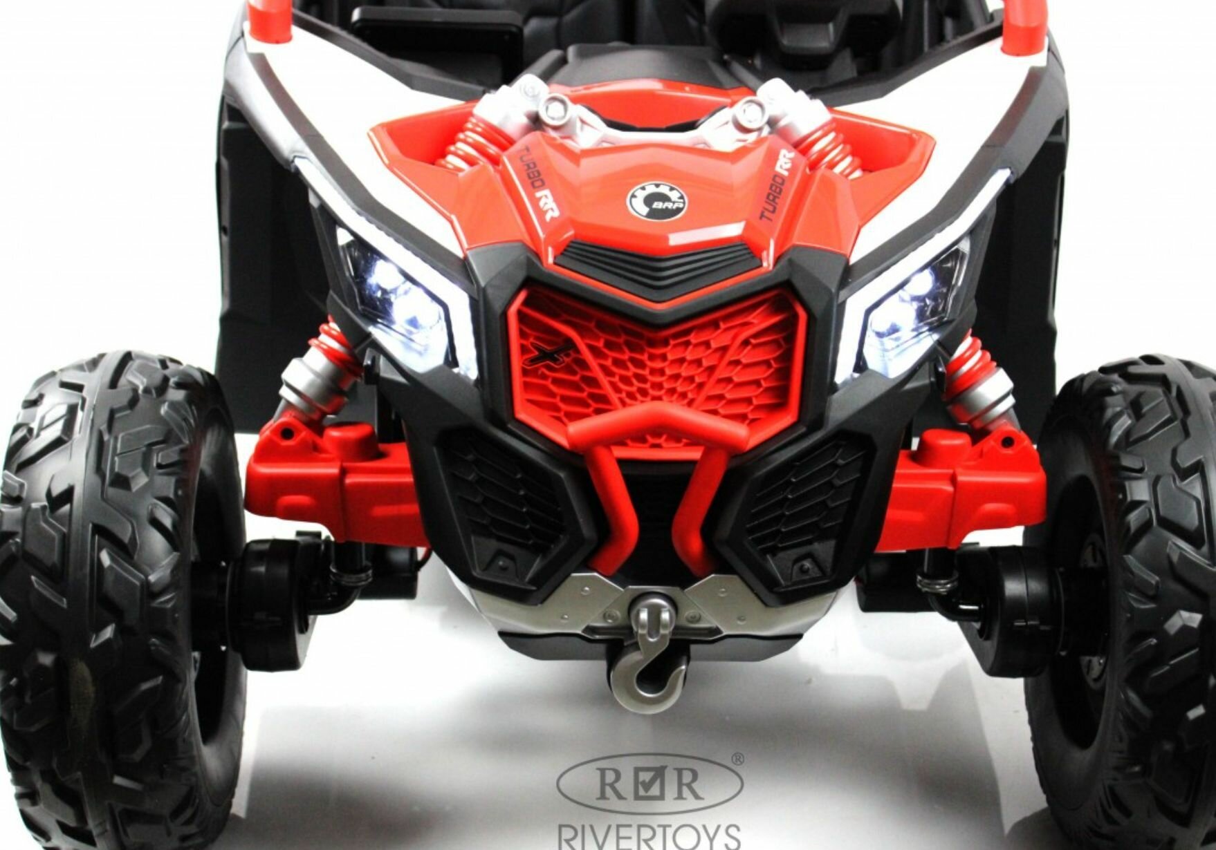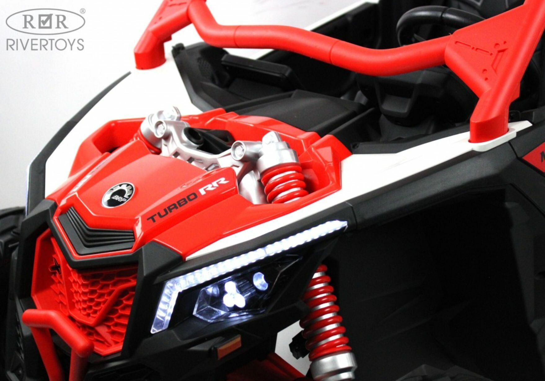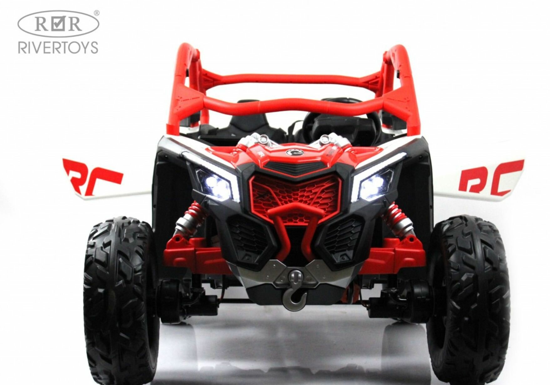 Купить Детский электромобиль Rivertoys BRP Can-Am Maverick (Y111YY) красный (Лицензионная модель) с дистанционным управлением, двухместный, полноприводный с доставкой по всей России.