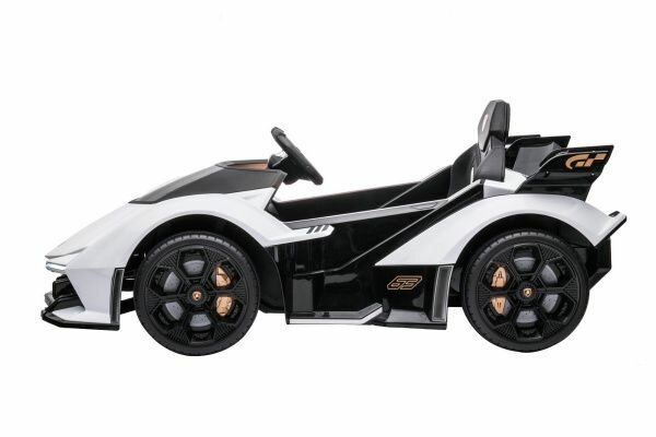 Детский электромобиль Lamborghini V12 Vision Gran Turismo 4WD 12V - HL528-LUX-WHITE - это спортивный электромобиль Lamborghini HL528 4WD с футуристичным дизайном станет отличным транспортом для юного гонщика или гонщицы. Стоит отметить, что это одна из немногих одноместных моделей с полным приводом (4WD), поэтому электрокар будет чувствовать себя уверено на любой поверхности (асфальт, гравий, газон, и др.). Удобное кресло из ЭКО кожи, ремень безопасности, резиновые колеса EVA и амортизация (на заднюю ось) делают поездку еще комфортнее.