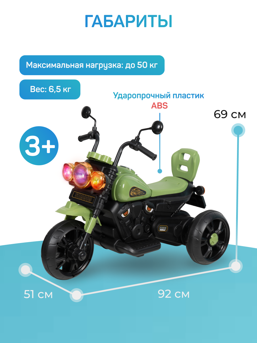 Детский электромобиль SR9909 выполнен в виде мотоцикла. Он подарит множество радостных моментов и поможет развить координацию и уверенность в себе.