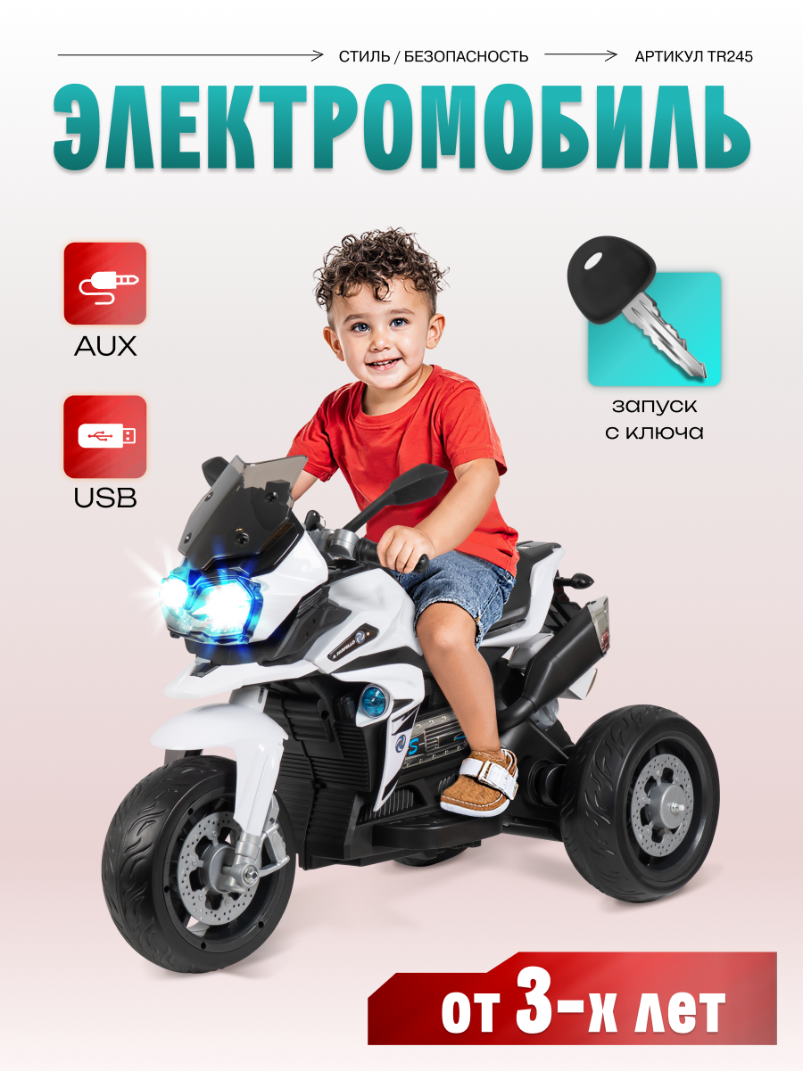 Купить Детский электромобиль мотоцикл для детей Farfello TR245, белый с доставкой по всей России. Детский электромобиль мотоцикл для детей Farfello TR245, белый: сравнение цен, характеристики, фото, актуальное наличие и цены.