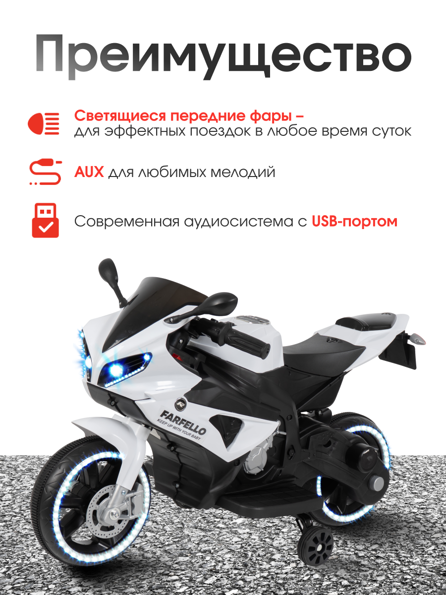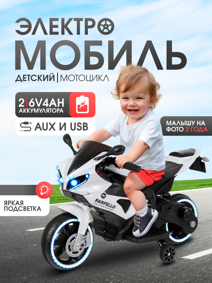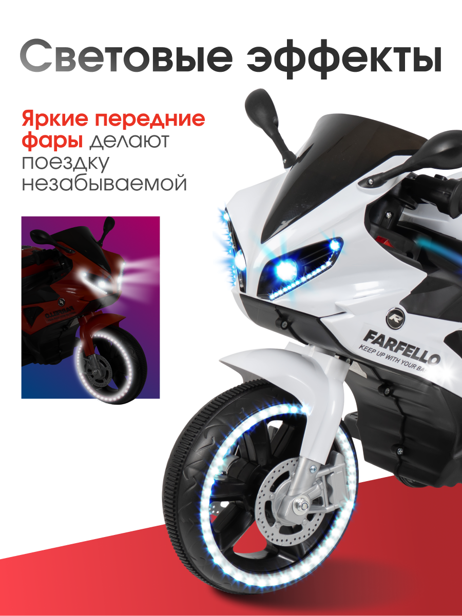 Купить Детский электромобиль мотоцикл для детей Farfello TR345, белый с доставкой по всей России. Детский электромобиль мотоцикл для детей Farfello TR345, белый: сравнение цен, характеристики, фото, актуальное наличие и цены.