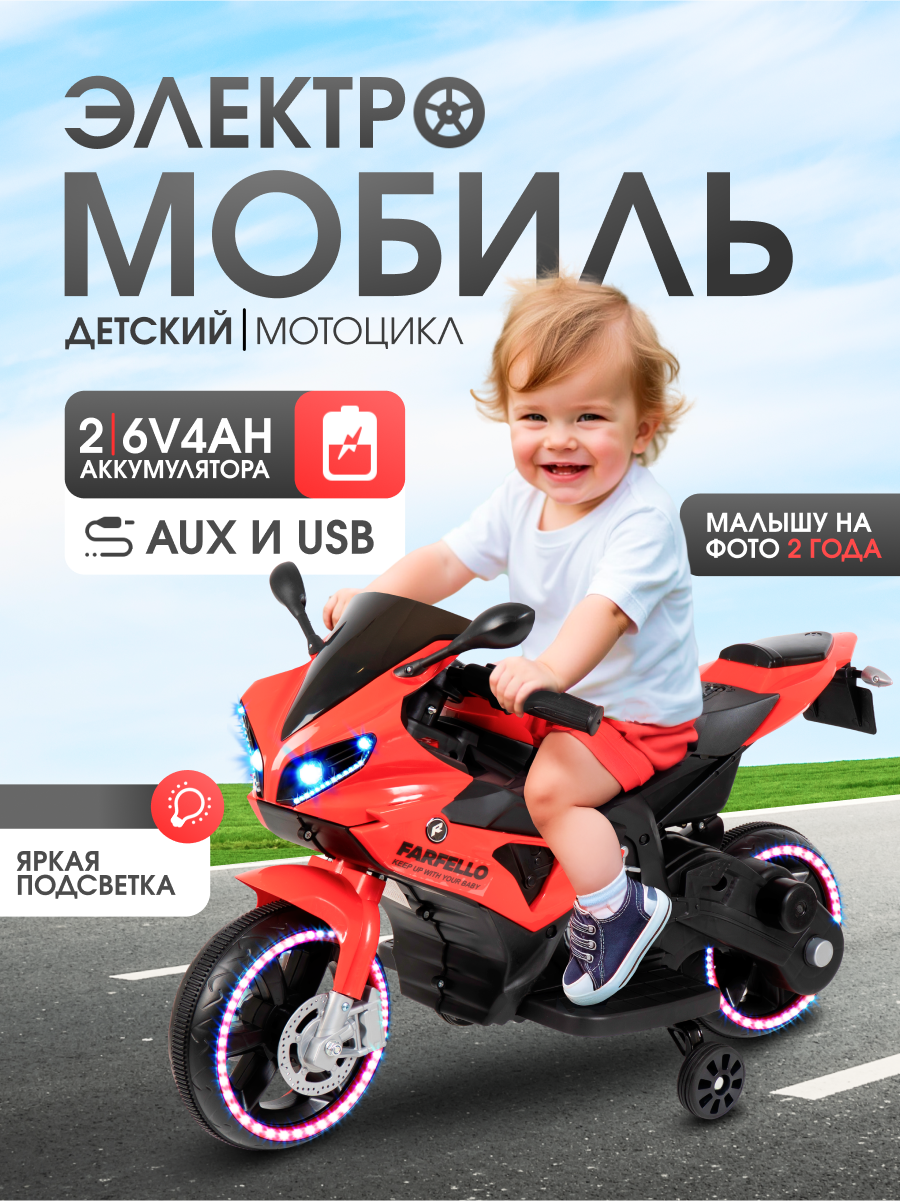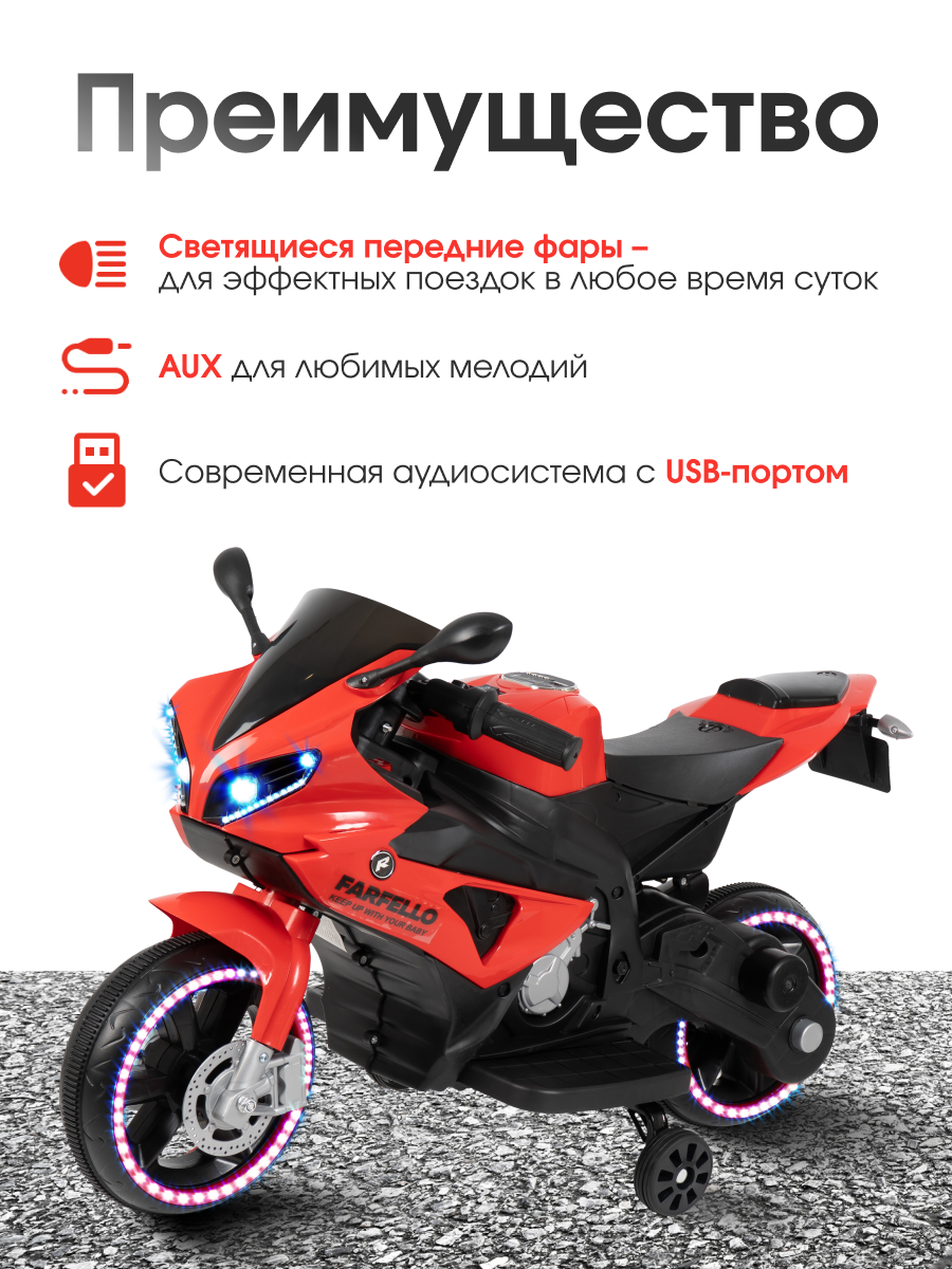 Купить Детский электромобиль мотоцикл для детей Farfello TR345, красный с доставкой по всей России. Детский электромобиль мотоцикл для детей Farfello TR345, красный: сравнение цен, характеристики, фото, актуальное наличие и цены.