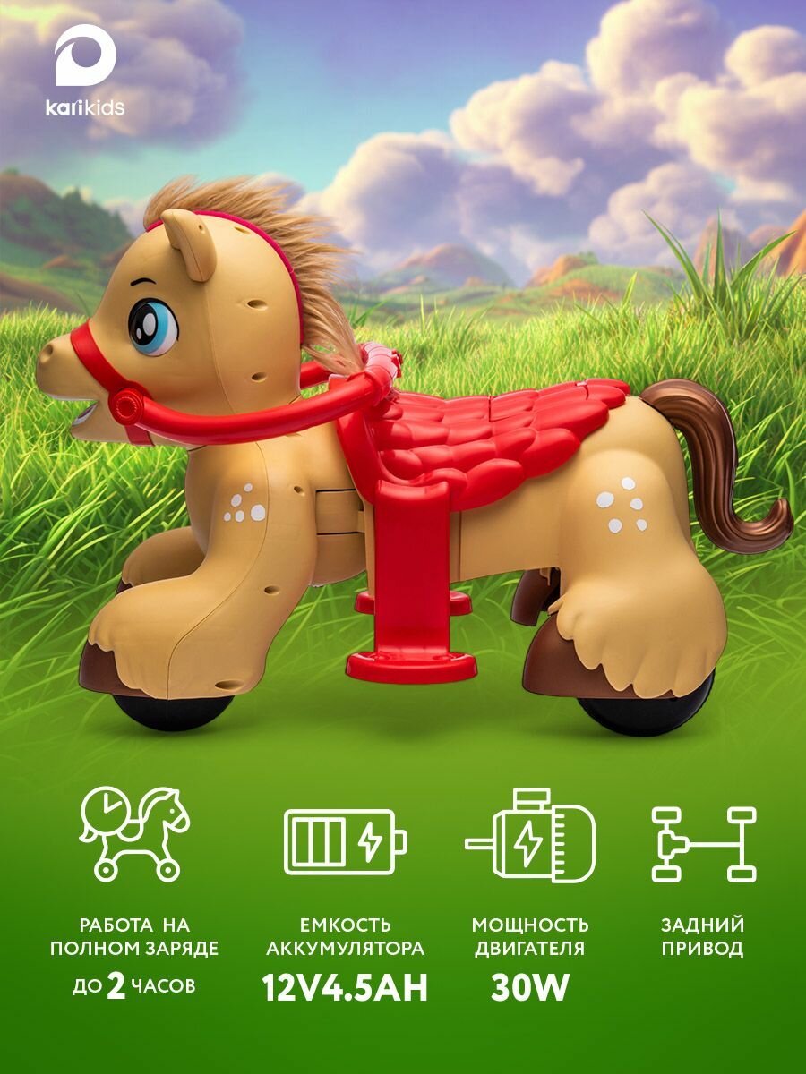 Купить Детский электромобиль на аккумуляторе и с пультом управления, Лошадка, P18-H, цвет коричневый, чёрный с доставкой по всей России.