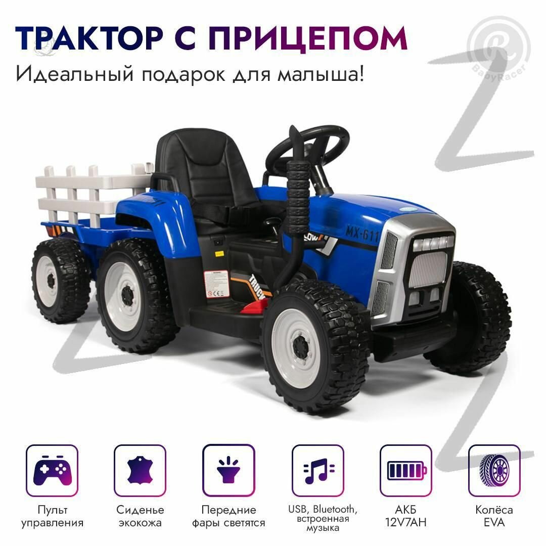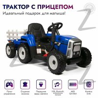 Купить Детский электромобиль Синий трактор с прицепом и пультом управления, световые и звуковые эффекты, для детей 2-5 лет с доставкой по всей России.