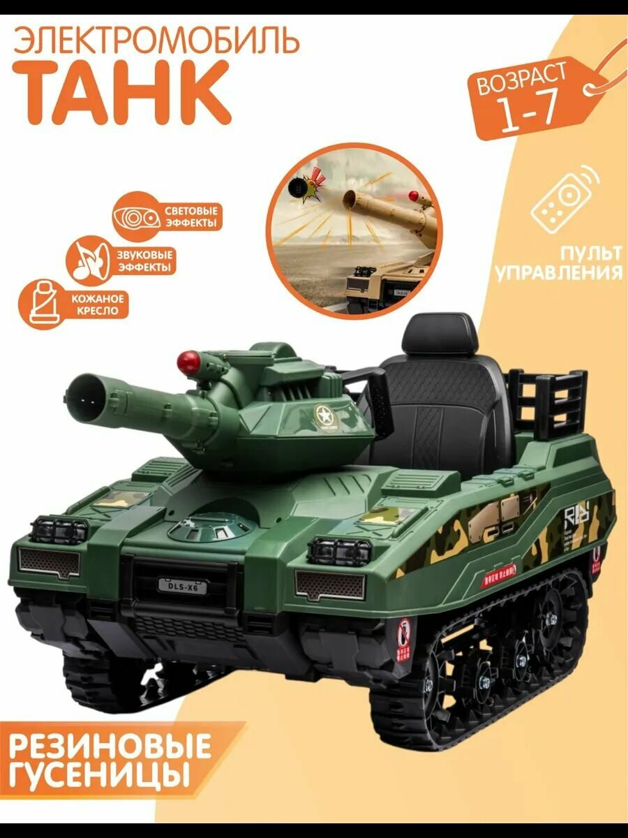 Купить Детский электромобиль танк с пультом управления — мощная игрушка с 2 аккумуляторами, звуковыми эффектами и Bluetooth для реалистичной игры с доставкой по всей России.