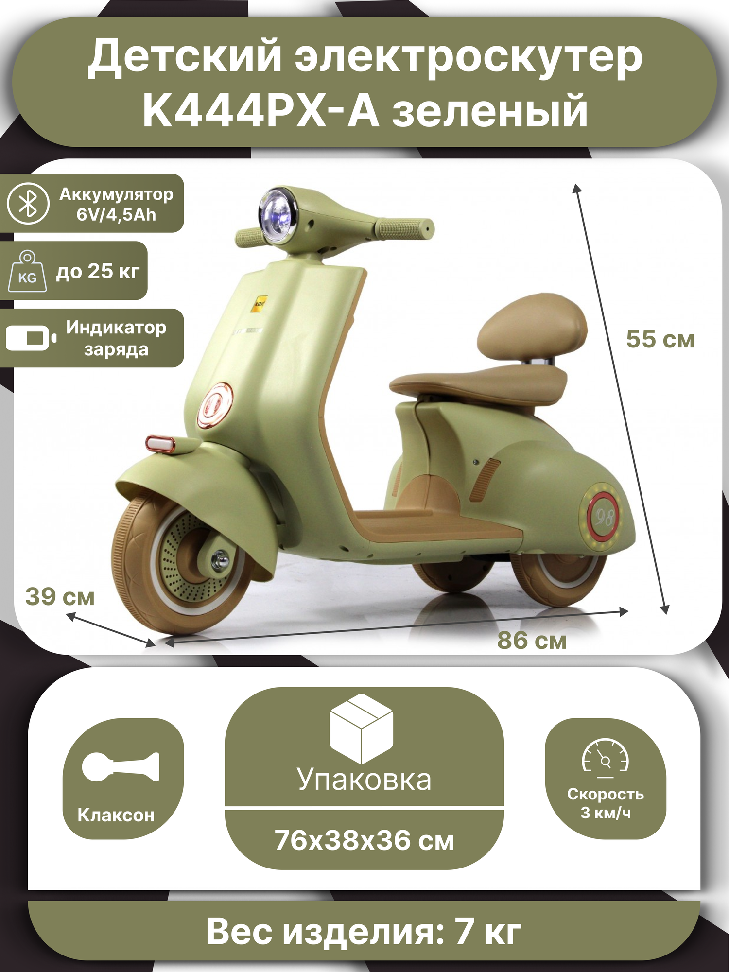 Детский электромотоцикл зеленый 6V с фарами, амортизаторами, эко-кожаным сиденьем и Bluetooth медиа-панелью: сравнение цен, характеристики, фото, актуальное наличие и цены.