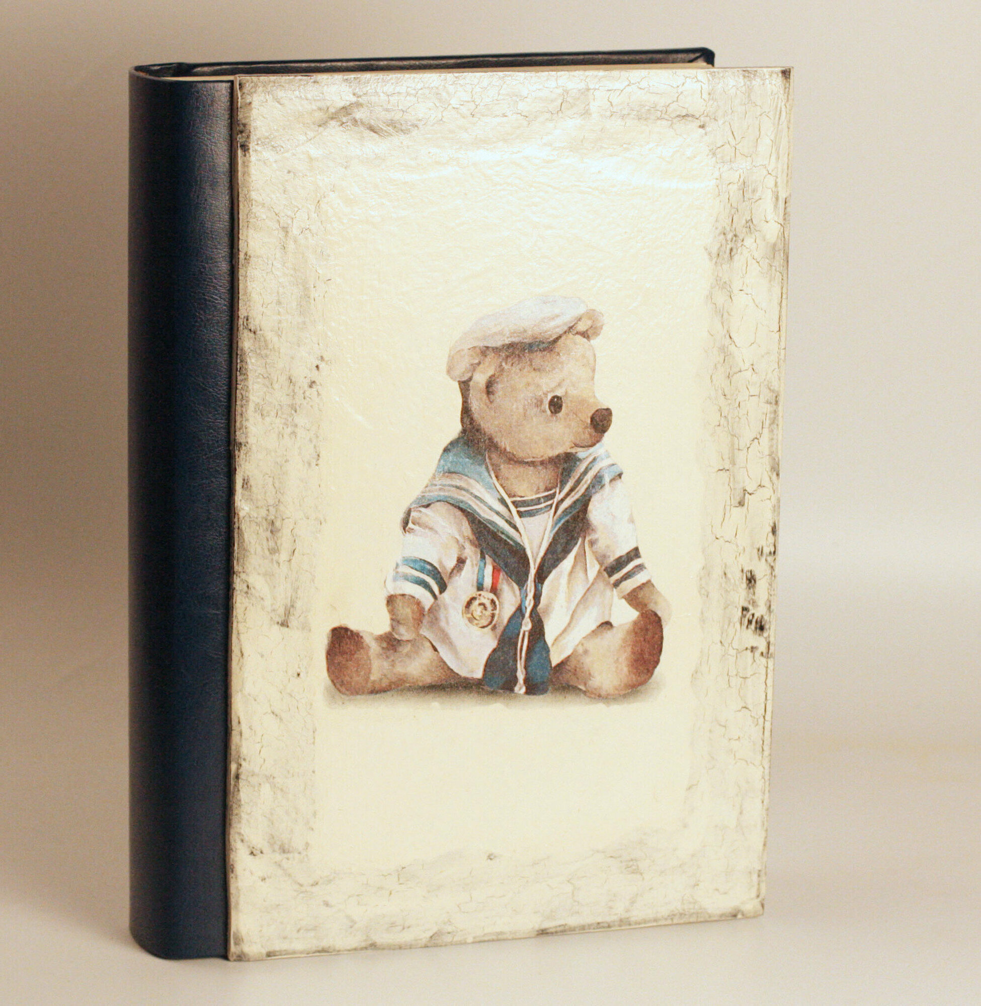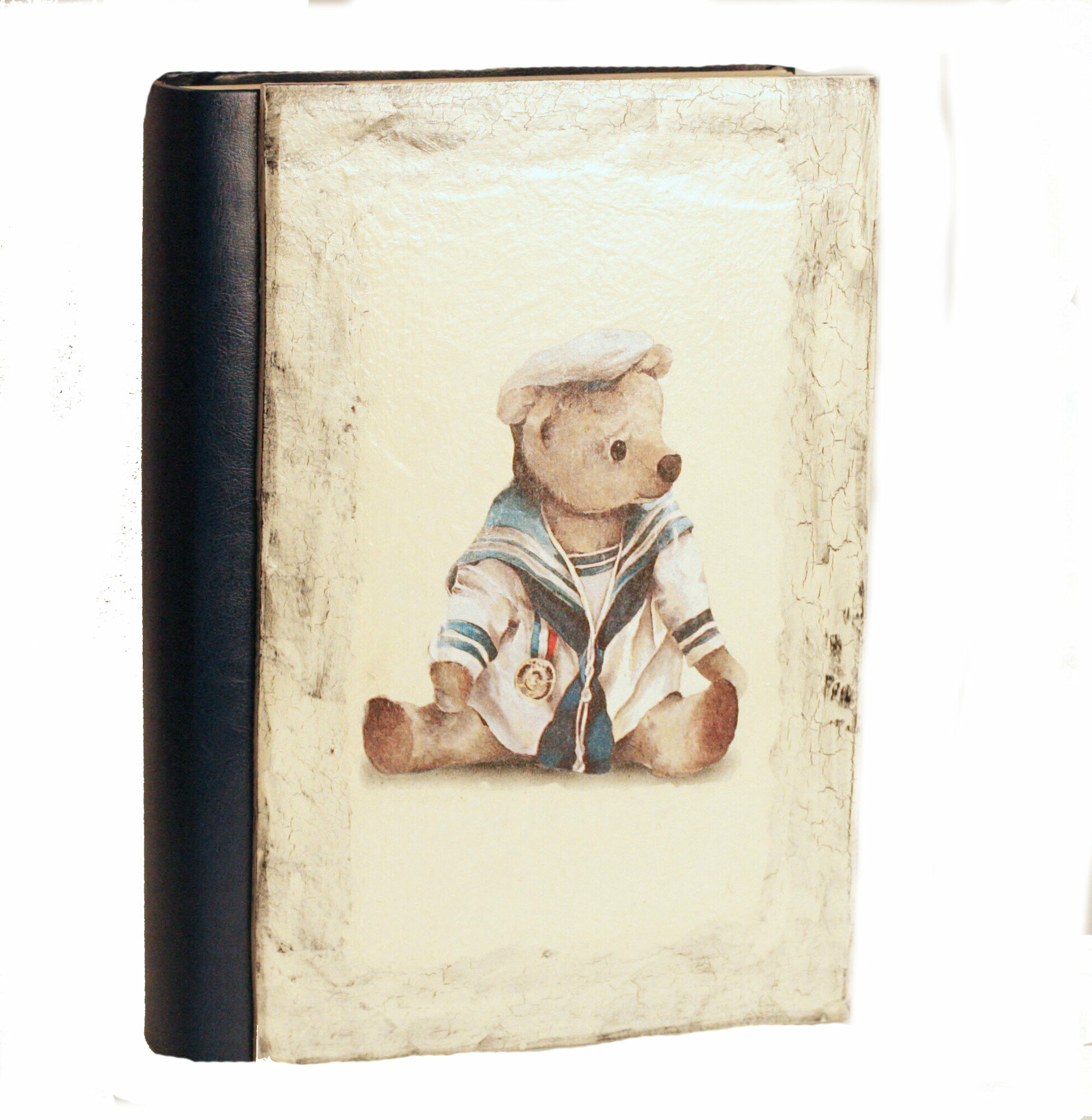 Детский фотоальбом "Marinaio" относится к коллекции Pallete. Альбом выполнен в стиле коллекции: рисунок, нанесенный на дерево с лицевой стороны, эко-кожа с обратной. Рисунок в слегка затертом стиле с антуражными трещинками, по центру сидящий мишка. Внешне альбом выглядит приятно и контрастно за счет своей цветовой гаммы. Внутри - наш фирменный классический блок, состоящий из дизайнерского картона, проложенного пергаментом и книжного переплета. Он качественно и надолго сохранит любимые фотографии. Вмещает в себя до 240 фотографий и сохраняет на долгие годы.