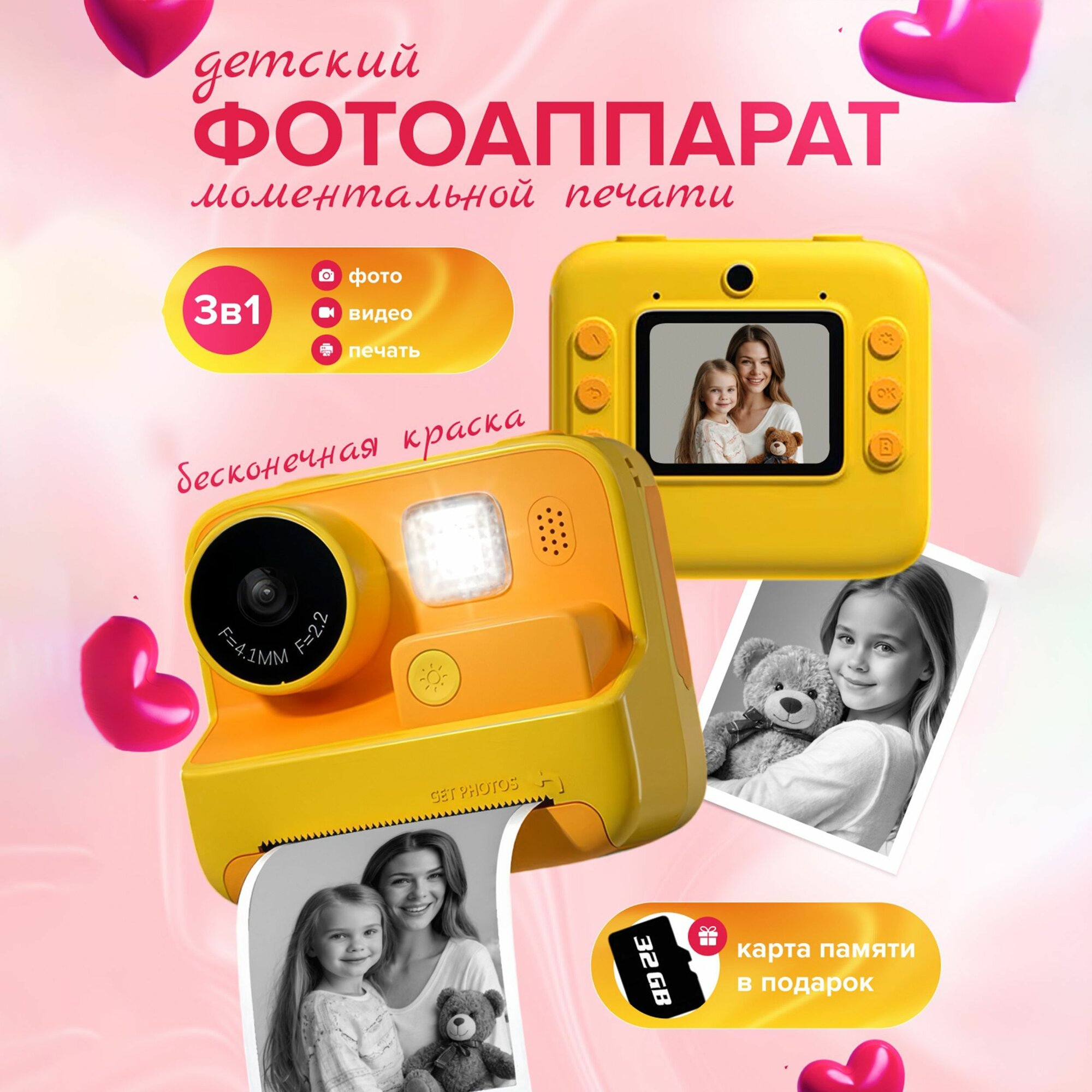 Купить Детский фотоаппарат мгновенной, моментальной печати фото Print camera Пчелка/полароид +CD карта 32GB (Желтый) с доставкой по всей России.