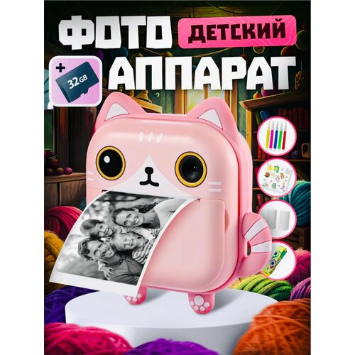 Развивающий набор для начинающих фотографов включает в себя игрушечную фотокамеру -фотоаппарат с мгновенной печатью и селфи камерой- и аксессуары к ней: регулируемый ремешок, милый чехол с ушками кошки, термобумага для распечатывания фото, кабель зарядки USB, инструкция. Дополнительно в комплект входят фломастеры для рисования и набор наклеек. Черно-белые фото можно раскрасить. В приборе предусмотрен разъем под флэшку MicroSD. Для того, чтобы снимать видео, вам потребуется карта памяти (в комплект не входит).