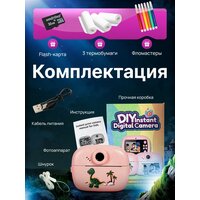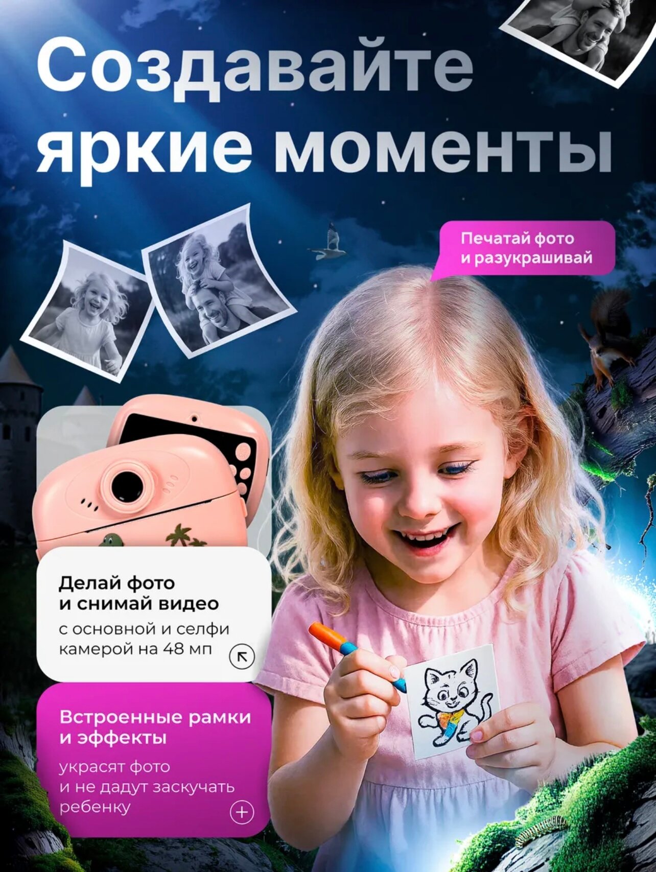 Купить Детский фотоаппарат моментальной печати, MP3 плеер, игры, две камеры, розовый с доставкой по всей России.