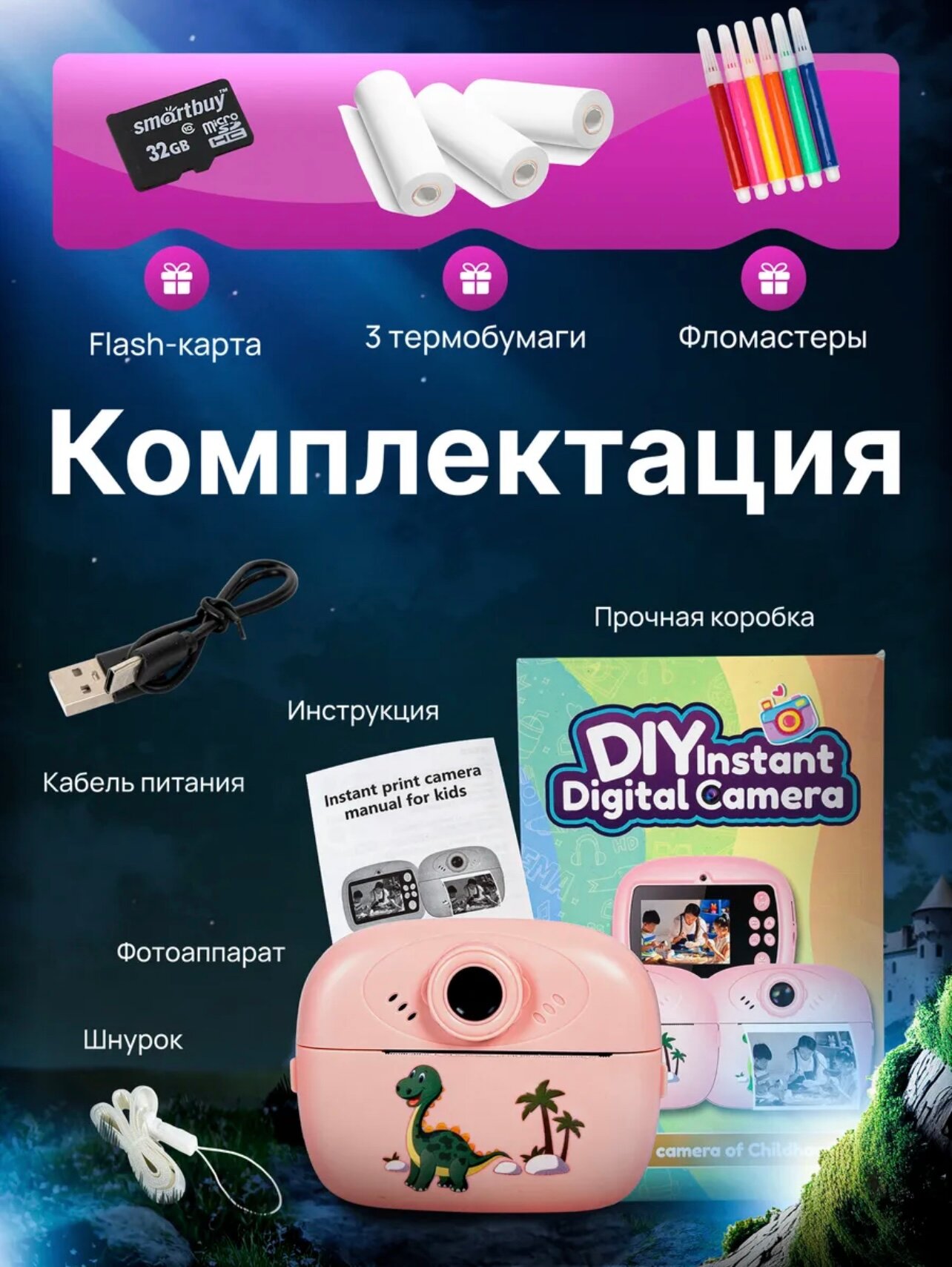 Детский фотоаппарат моментальной печати, MP3 плеер, игры, две камеры, розовый: сравнение цен, характеристики, фото, актуальное наличие и цены.