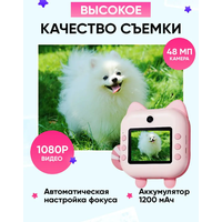 Купить Детский фотоаппарат Print Camera с мгновенной печатью фото Котенок + карта памяти на 32GB розовый с доставкой по всей России.