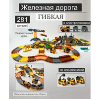 Купить Детский гибкий автотрек с паровозиком на батарейке и спецтехникой, 281 деталей с доставкой по всей России.