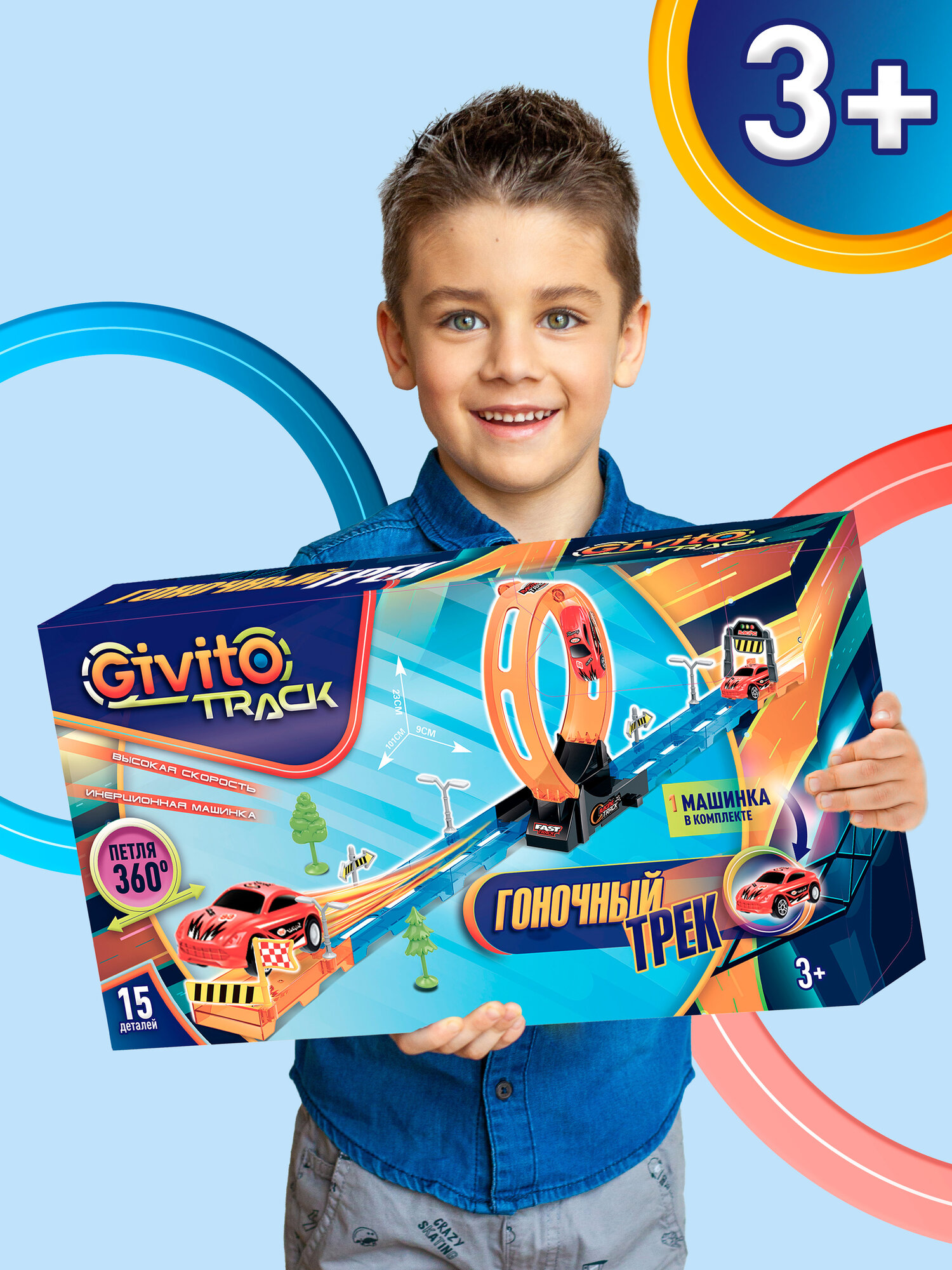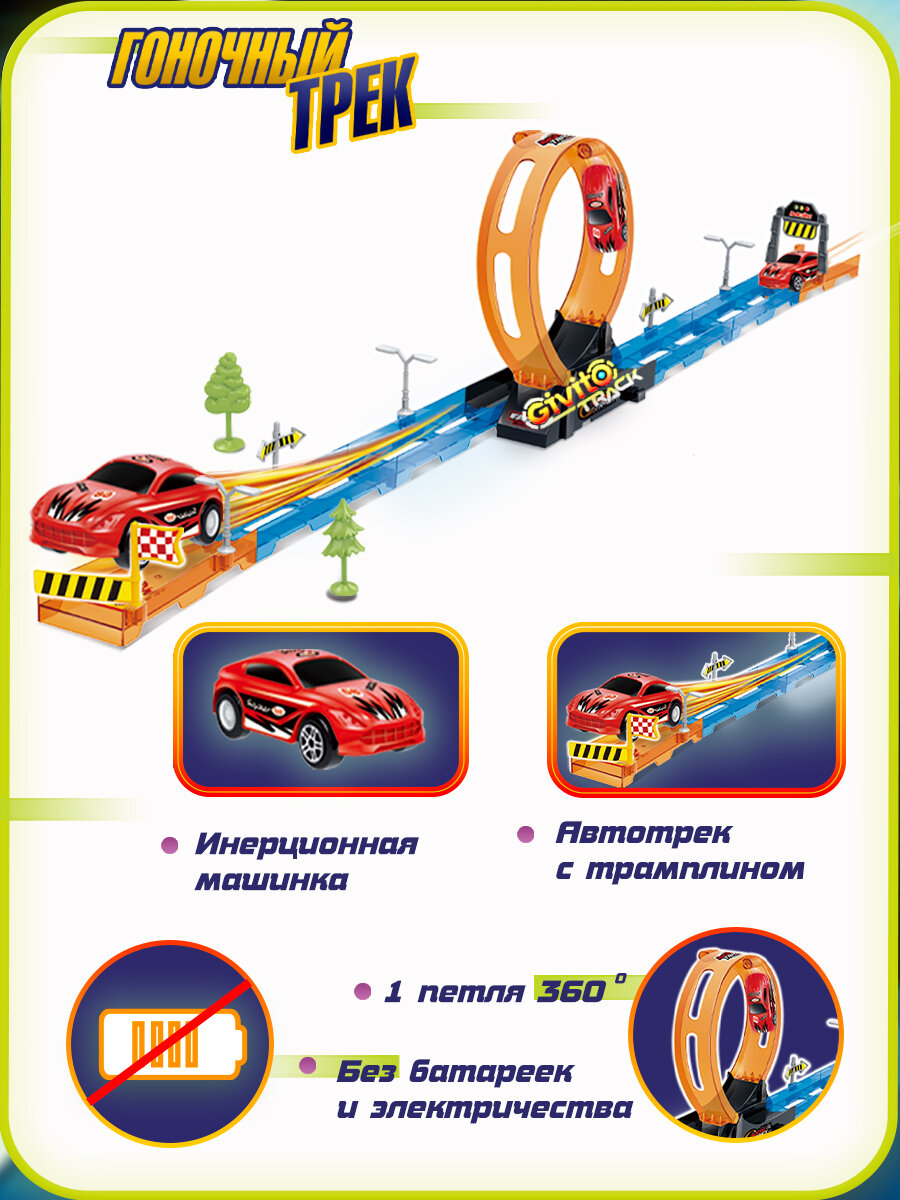 Купить Детский гоночный автотрек Givito с инерционной машинкой (петля 360°), 15 деталей G2412-491 с доставкой по всей России.