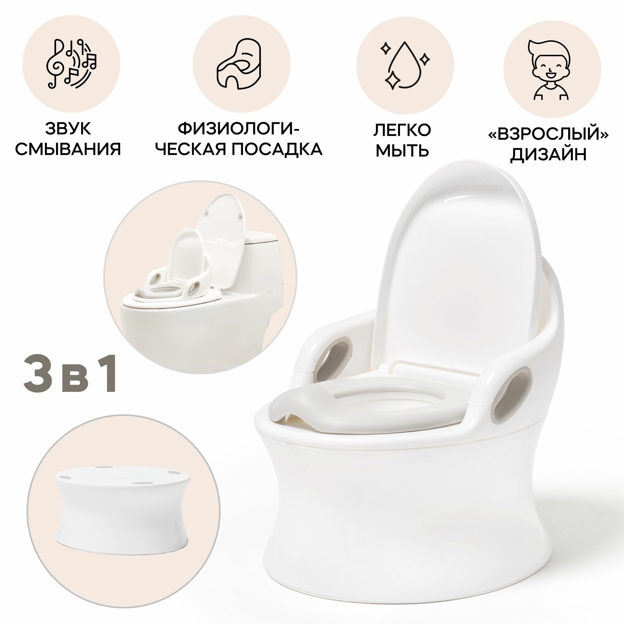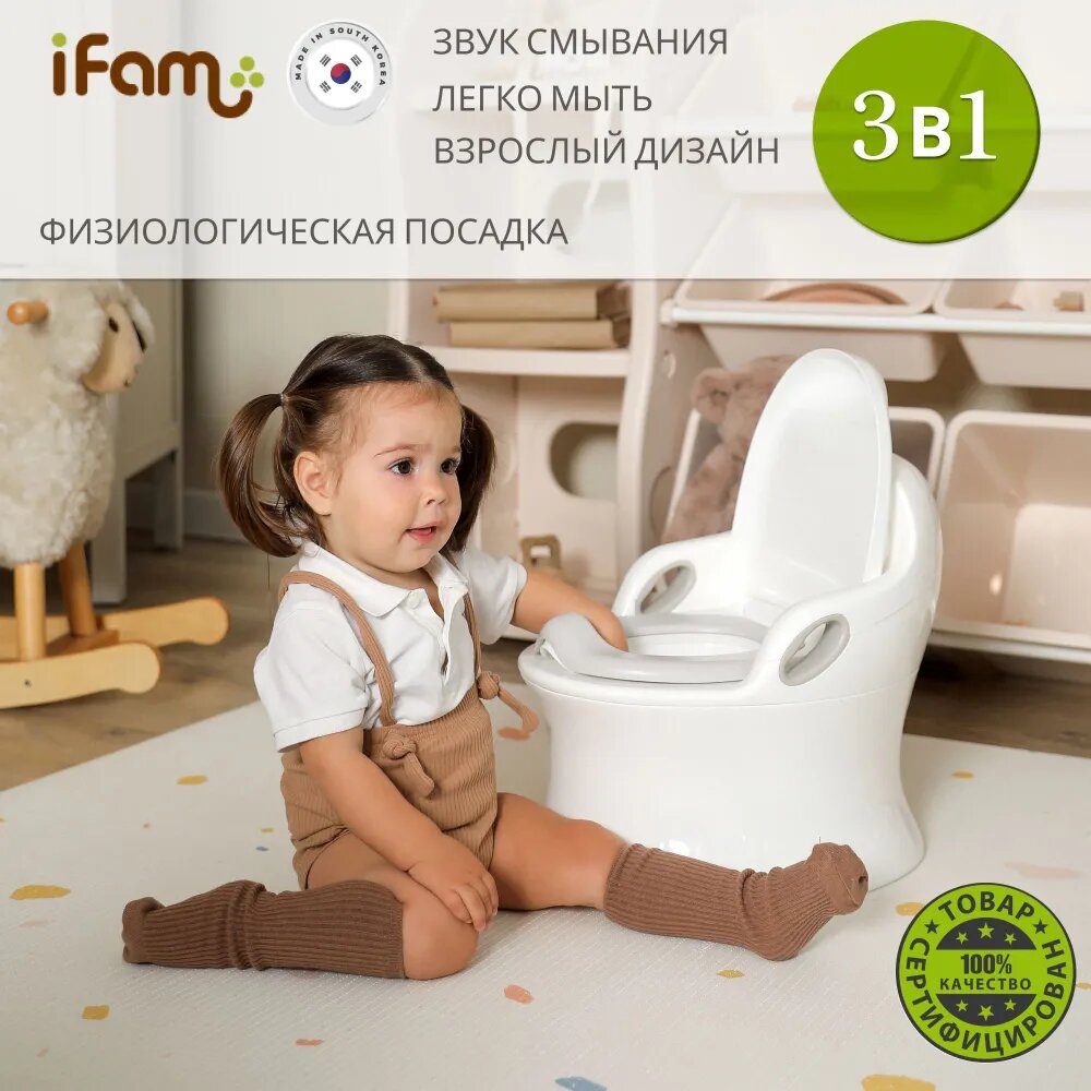 Детский горшок iFam PREMIUM EASY DOING со спинкой в форме унитаза со звуком воды, белый: сравнение цен, характеристики, фото, актуальное наличие и цены.
