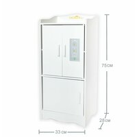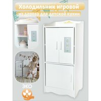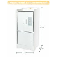 Деревянный игрушечный холодильник может использоваться как дополнение к детской кухне или отдельный элемент игры. Подходит для девочек и мальчиков. Вместе с моделями кухонь линейки «Ми-ми» создает комплект. Помогает развивать социальные и бытовые навыки, устную речь, расширять кругозор и словарный запас. Позволяет научиться готовить, хранить продукты и понимать их важность для людей. Идеальный вариант для сюжетно-ролевой в поваренка или в магазин. На полках холодильной камеры есть место для настоящей или игрушечной еды. Можно загрузить морозилку мороженым, пельмешками и кормить мишек и куколок. Вмещает посуду сохраняя порядок в детском уголке и уют в комнате. Выполнен в скандинавском стиле в белом цвете с напечатанной панелью управления. Размеры: Высота 77 см, Длина 34 см, Глубина 28 см. Компактный размер идеально подходит для детских игровых комнат или кухонных игровых зон. Он не займет много места, но при этом достаточно вместителен, чтобы хранить множество вымышленных продуктов и напитков. Таким образом, ребенок сможет имитировать настоящие кулинарные процессы и создавать свои маленькие магические миры игры. Изготовлен из дерева и обеспечивает безопасность использования и защиту от повреждений. Материалы, такие как МДФ и акриловые краски без запаха, обеспечивают безопасность здоровья детей. Способствует развитию фантазии, творческого мышления, моторики и социальных навыков.