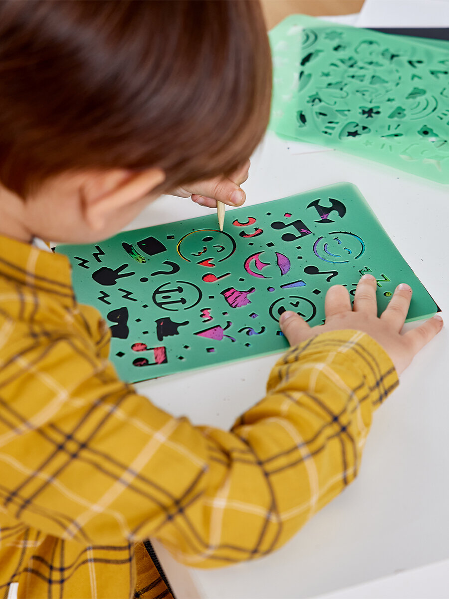 Купить Детский игровой набор для творчества Hape «Радужные блестки» с трафаретами E1071_HP с доставкой по всей России.
