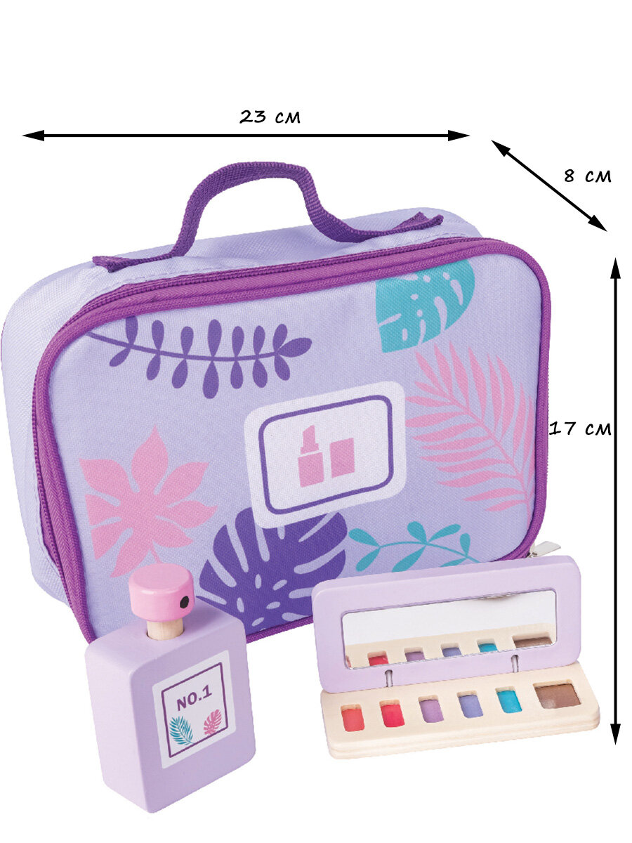 Косметичка, Духи, Коробочка теней для век, Кисточка для теней для век, Губная помада, Лак для ногтей, Пудреница, карандаш для бровей, Расческа
