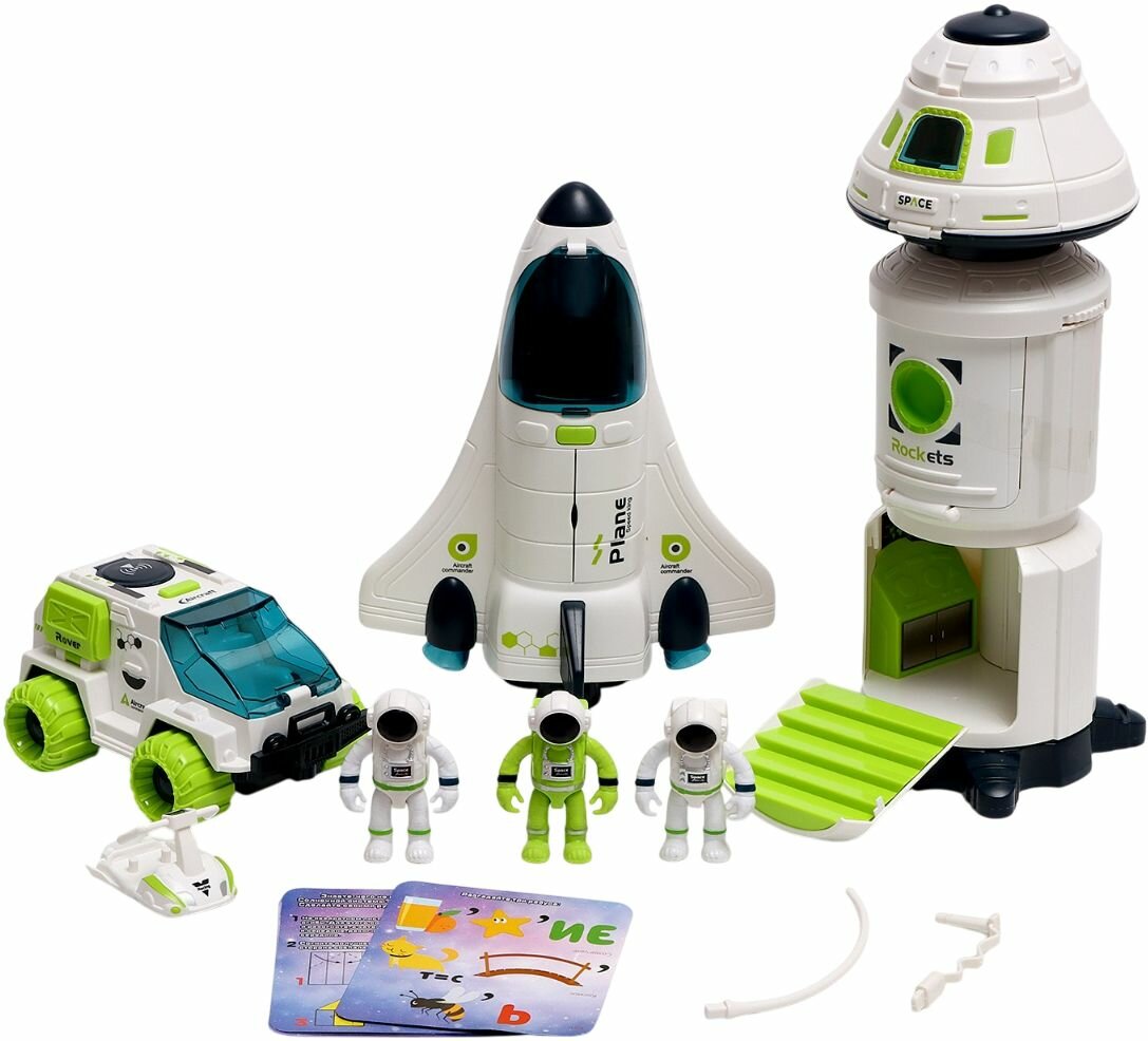 Детский игровой набор «Исследование космоса» 3 в 1: станция, шаттл, луноход и фигурки космонавтов + обучающие карточки, с подвижными деталями, со светом и звуком, работает от батареек: сравнение цен, характеристики, фото, актуальное наличие и цены.