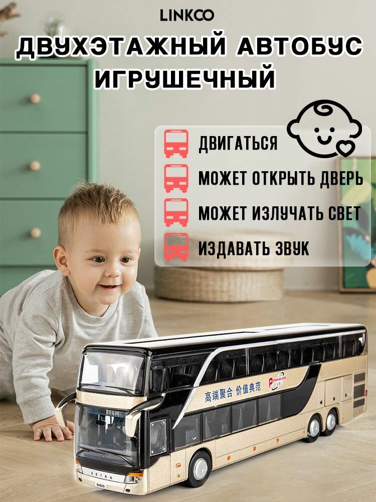 Детский игрушечный двухэтажный автобус, металлическая модель междугороднего туристического автобуса,8,1, золотой: сравнение цен, характеристики, фото, актуальное наличие и цены.