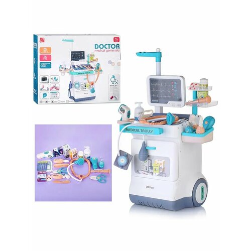Такой набор вызовет у малыша массу положительных эмоций и увлечет его надолго, позволяя маме отдохнуть. Так кроха освоит социальные роли, получит новые знания о важных профессиях, станет внимательнее и заботливее. Благодаря большому игровому набору из 26 предметов ваш ребенок станет настоящим врачом! Набор доктора детский - отличный подарок как для девочки, так и для мальчика. В процессе игры юный врач произведёт осмотр, назначит лечение, выпишет лекарства, а также узнает назначение медицинских инструментов. Сможет провести УЗИ обследование, проверить пульс, измерить температуру, сделать укол.\nФункциональные особенности :\n- монитор УЗИ со звуками;\n- термометр (писк, красная подсветка)\n- ложка (красная подсветка).\n- лор-инструмент (белый свет)\n- стетоскоп с подсветкой и звуком сердцебиения.\nРазмеры: 46,5 х 26,5 х 55 см.\nРостомер до 115 см.\nВ набор так же входят: шприц, скальпель, ножницы, карта пациента, баночки и коробочки с лекарствами.\nДля работы аппарата необходимо 2 шт. ААА ( в комплект не входят). Для работы инструментов 6 шт. LR 13 (входят в комплект).
