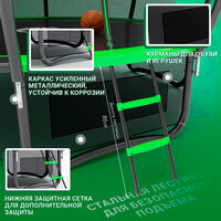 | Особенности | W-образные опоры, баскетбольное кольцо, защита пружин, нижняя защитная сетка, с защитной сеткой, с лестницей, складная конструкция |
