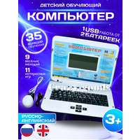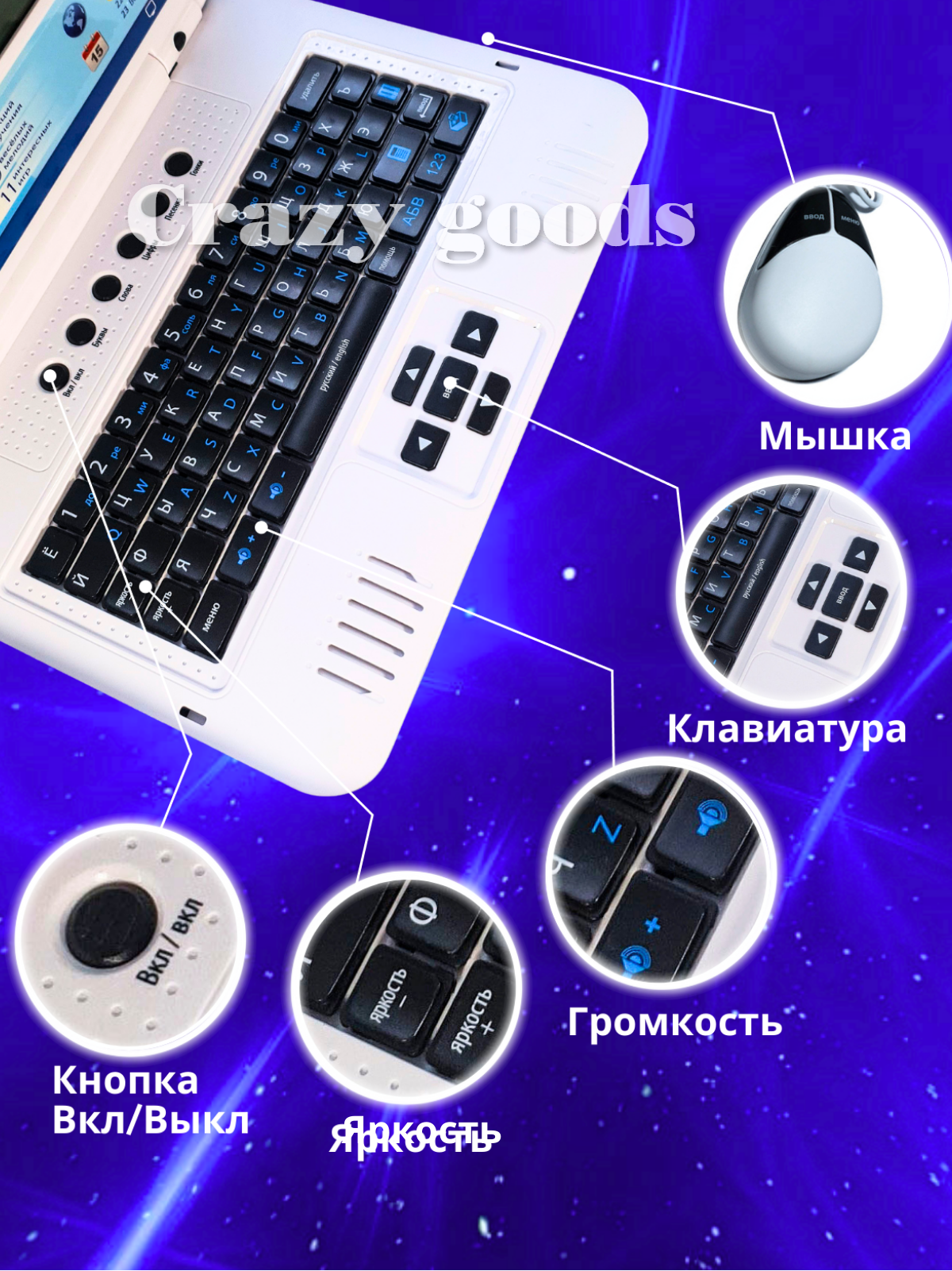 Ваш ребенок любознательный, любит современные игры и умные гаджеты? Тогда вам будет просто необходим наш детский обучающий компьютер! Ноутбук детский это увлекательная развивающая игрушка, которая познакомит малыша с алфавитом, цифрами, основами счёта, правописания и логики, а также развлечёт музыкой и песнями. Комбинация этих предметов позволит подготовиться к школе, а дополнительные игры для детей скрасят процесс обучения, который и без того будет веселым и насыщенным. Развивающий компьютер отлично заменит тетрис игрушки и настольные игры для детей, будет полезен для мальчиков, девочек и возможно, подростков. Обучающий компьютер хороший помощник для эффективной подготовки детишек к школе. Компьютер детский способствует улучшению памяти, логического мышления, цветового и звукового восприятия. Интерактивная игрушка для малышей поможет в изучении грамматики, математики, букв, слов, цифр, цветов, английского языка. Процесс обучения, который ребенок познает используя умный компьютер, можно разбить на несколько частей. Развивающие игрушки включают в себя - изучение алфавита и цифр, обучение письму и счету, составление слов; изучение нот, игра и прослушивание мелодий; компьютерные игры и многое другое. Используя ноутбук детский развивающий, дети могут выполнять следующие упражнения: прочитать слово, написать слово, выбрать правильное слово, вставить правильную букву, сложение, вычитание, умножение, деление и другие действия. Детский компьютер невероятно функционален, потому что помимо прочего ребенок выучит дни недели, время, времена года. Обучающий компьютер для детей похож на взрослые модели, но в нем нет отвлекающих мультфильмов, игр и других приложений. Заставить ребёнка заниматься математикой будет возможно очень сложно, но он с удовольствием будет выполнять индивидуальные задания на собственном переносном компьютере. Детский ноутбук предназначен для тренировки памяти, мышления, логики, развития мелкой моторики и внимания. Ноутбук детский обучающий, предназначен для обучения детей от 3 - 5 лет. Ноут компактный, работает от батареек, поэтому его удобно брать в поездку, в дорогу, в машину, в самолет или на природу или использоать как игрушку для садика или школы. Умный компьютер игрушка станет прекрасной альтернативой телевизору и гаджетам, поможет развить усидчивость, мелкую моторику, координацию и логику, тренирует память, расширяет кругозор. Ноутбук для учебы детский имеет жидкокристаллический дисплей, поэтому он абсолютно безопасен для детских глаз и нет необходимости ограничивать время занятий и игр. Детский ноутбук обучающий прост в использовании, выполнен из экологически чистого материала, имеет приятные на ощупь клавиши с русским алфавитом, буквы английские написаны ниже. Ноутбук для игр имеет доступное управление при помощи полноценной клавиатуры, в комплекте есть компьютерная мышь беспроводная. Игрушечный компьютер схож со взрослым, поэтому ребенок не только изучит азы новых для себя наук, но и познакомится с тем, как выглядит и работает настоящий ноутбук. Этот удивительный развивающий компьютер послужит как прекрасный подарок ребенку 6 лет, 8, 6, 9, 7 или 10 лет лет, к 1 сентября, как музыкальный подарок на день рождения, 8 марта, 23 февраля или Новый год, ведь детишки без ума от обучающих компьютеров! В наш
