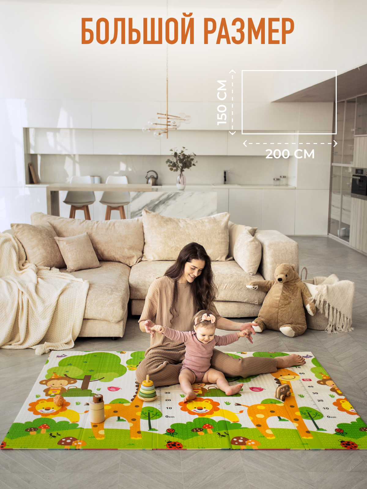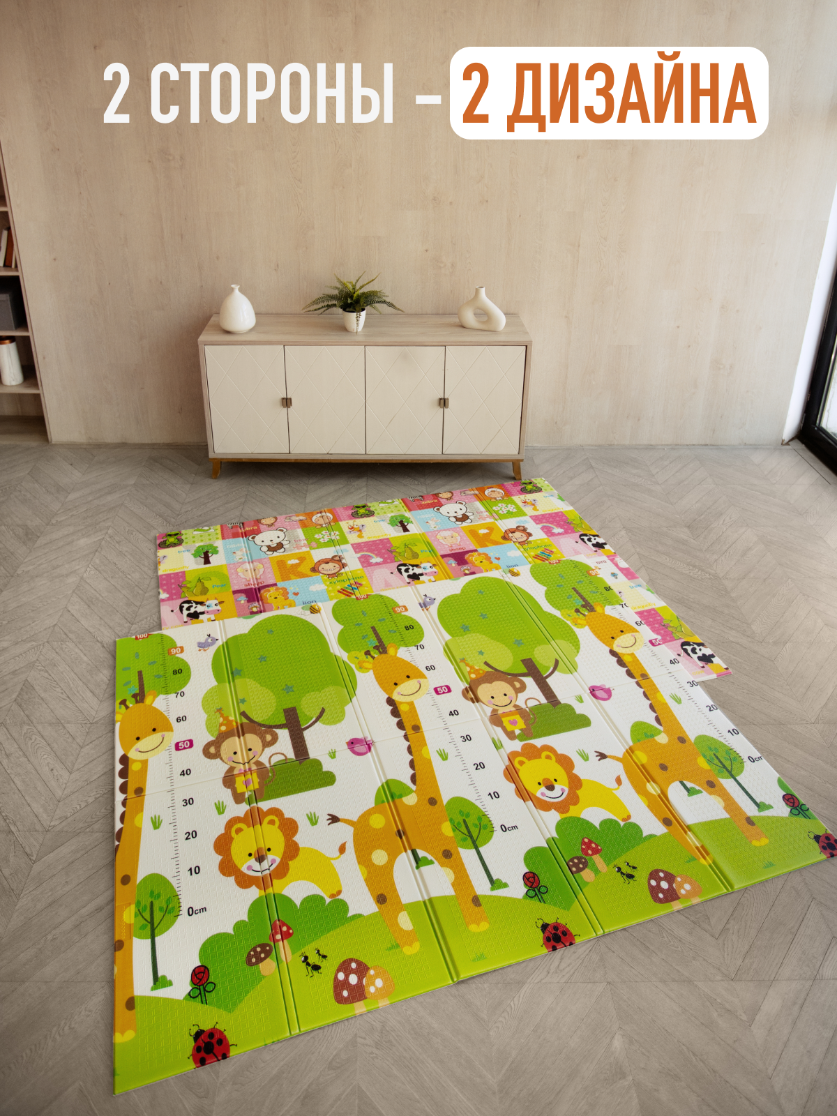 Купить Детский коврик для ползания складной двухсторонний игровой термоковрик Mamagoods 150 х 200 Животные и жираф с доставкой по всей России.