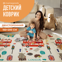Купить Детский коврик для ползания складной двухсторонний игровой термоковрик Mamagoods 150х200 Автобус и Городок с доставкой по всей России.