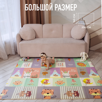 Купить Детский коврик для ползания складной двухсторонний игровой термоковрик Mamagoods 150х200 Динозавры и животные с доставкой по всей России.