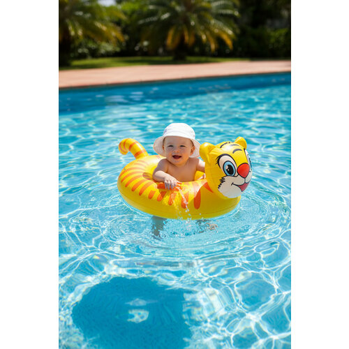 Яркий желтый цвет круга и его форма в виде тигра с ножками привлекут внимание вашего ребенка и сделают процесс плавания еще более увлекательным.