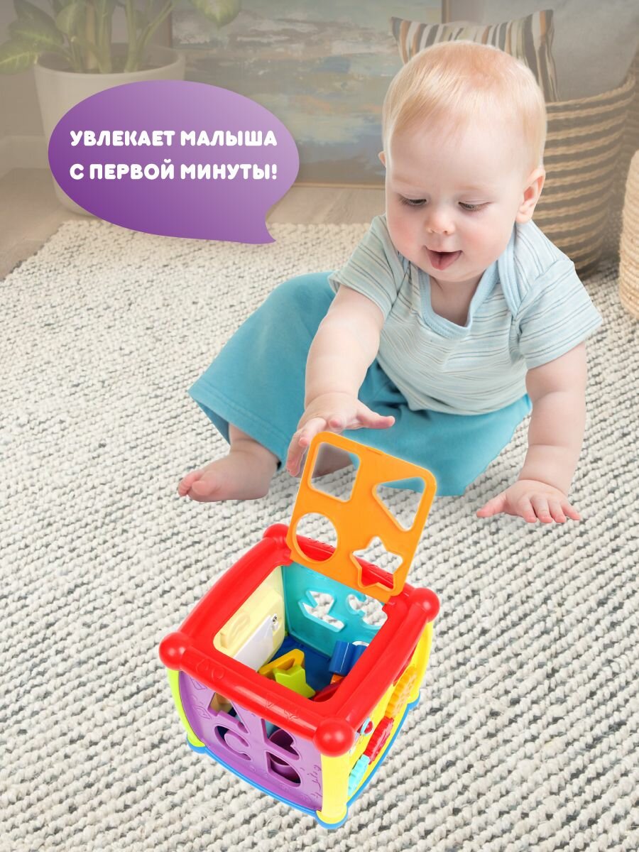 Купить Детский кубик сортер для малышей со звуком, Ути Пути / Развивающая игрушка куб бизиборд для детей / Бизикубик монтессори с доставкой по всей России.