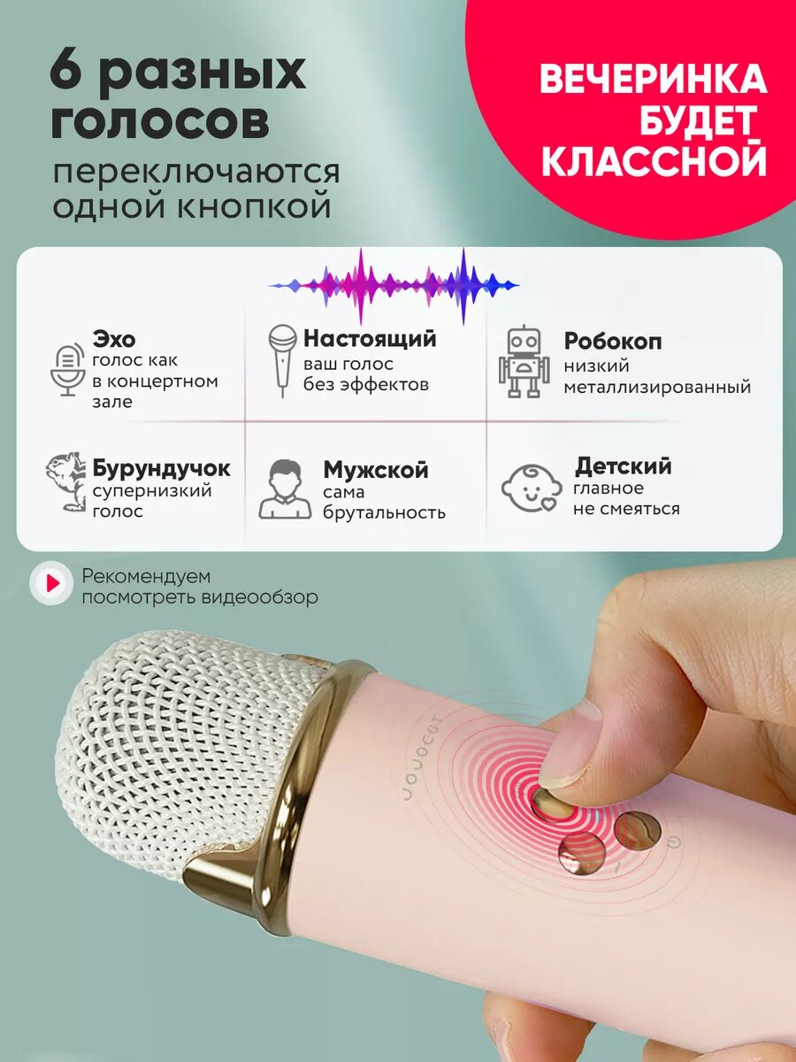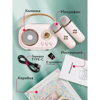 Купить Детский микрофон (2штуки в наборе) JOJOCAT с колонкой Bluetooth для караоке, розовый цвет с доставкой по всей России.